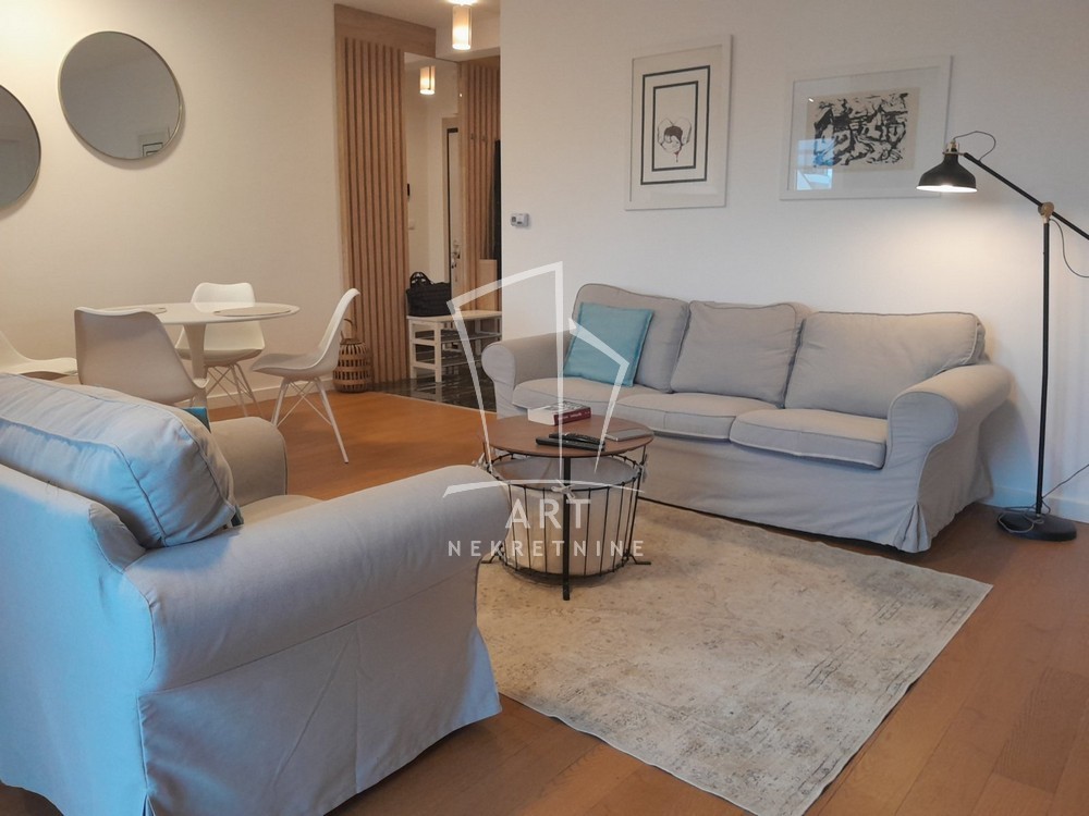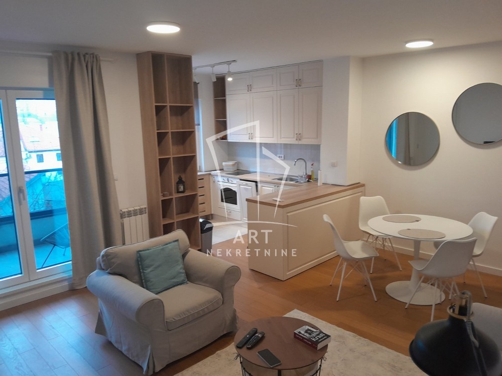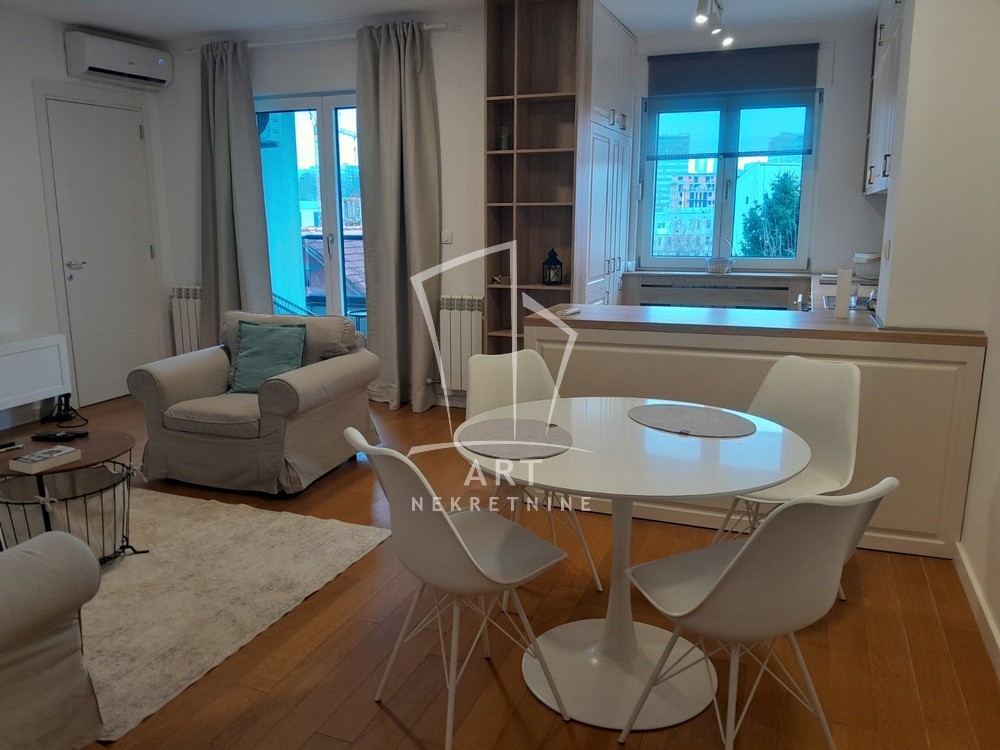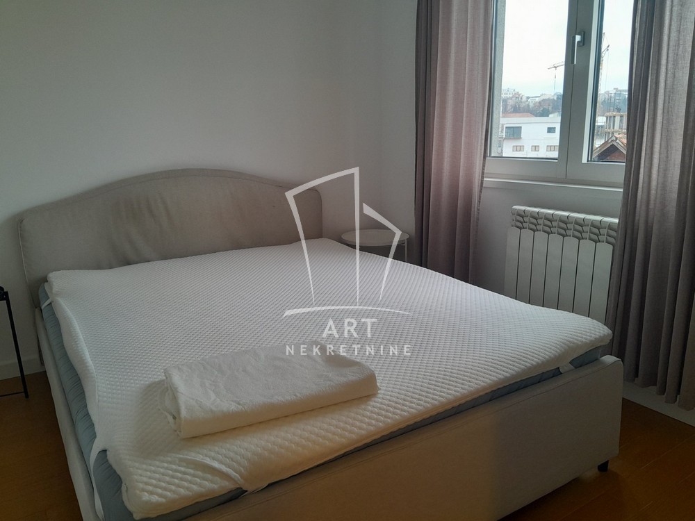 Na odličnoj lokaciji, svega 10 minuta od Slavije, u novoizgrađenoj zgradi, izdaje se komforan 3.0 stan, moderno namešten i kompletno opremljen. Nalazi se na prvom spratu u zgradi sa liftom, interfonom i video nadzorom.