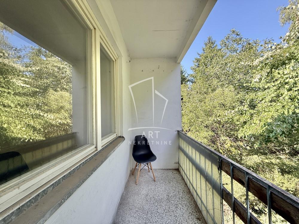 Izvorno stanje, 2 kupatila, 2 terase, tavanski prostor iznad stana, pripadajući podrum, 1ar zajedničkog dvorišta.