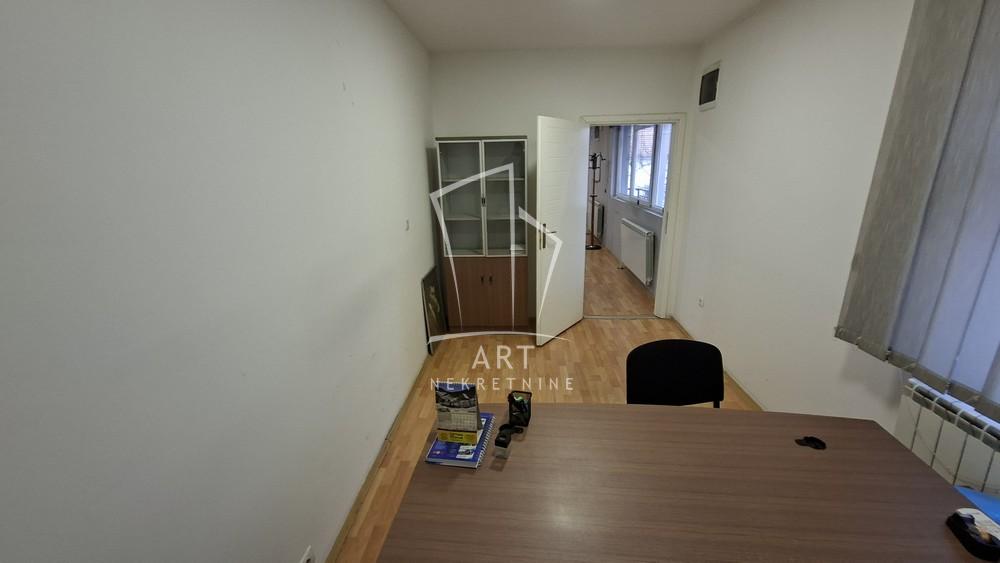 Na prvom spratu je kanclarijski prostor površine 150m2 i sastoji se od pet klmatizovanih kanclarija, kuhinje, dva kupatila i toaleta.