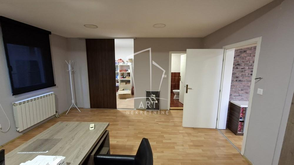 Prostor se sastoji iz dva nivoa, na prizemlju je magacinski prostor od 150m2 koji se može koristiti i kao radionica.