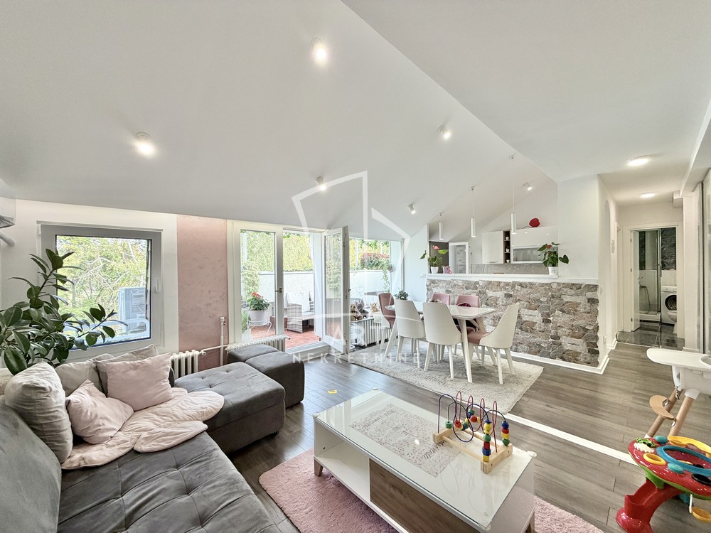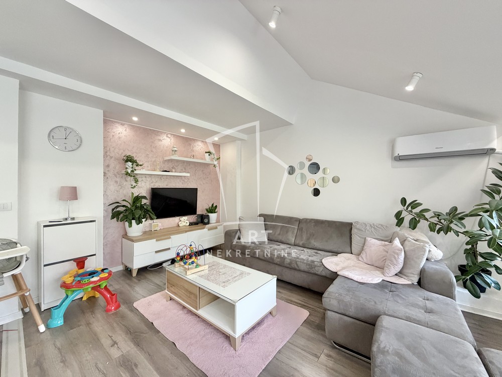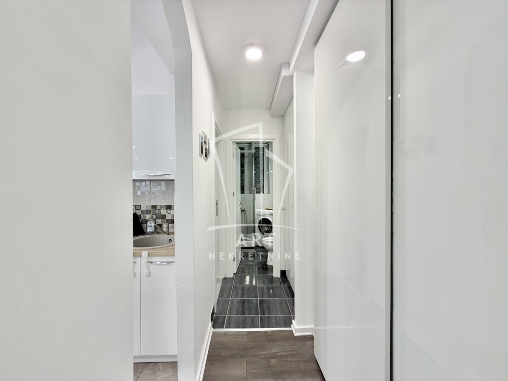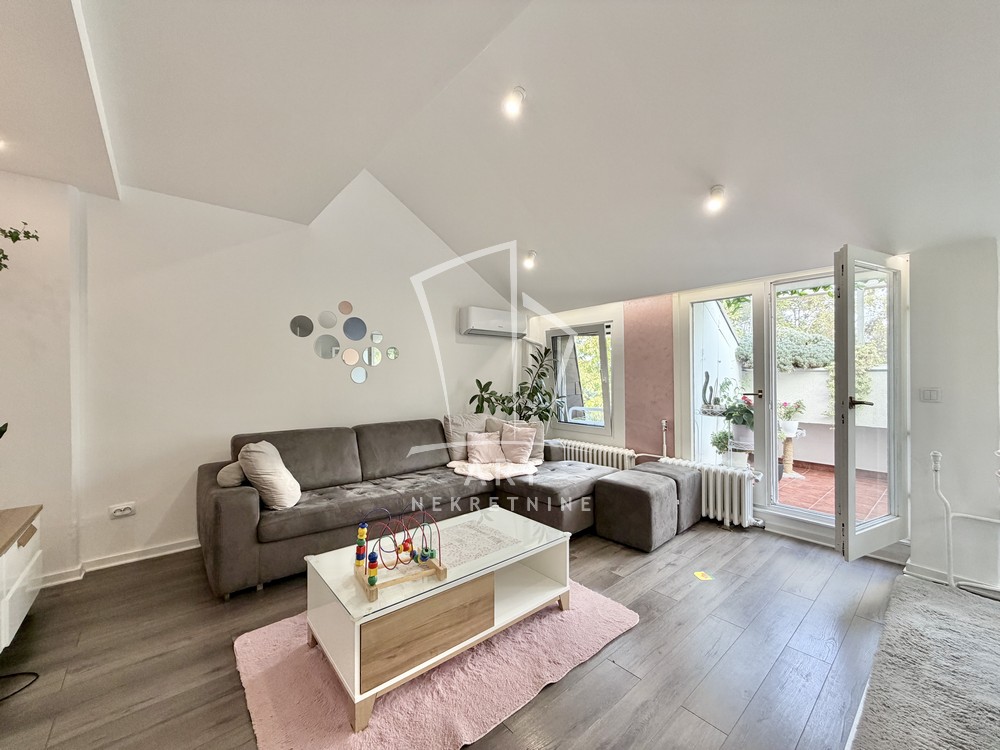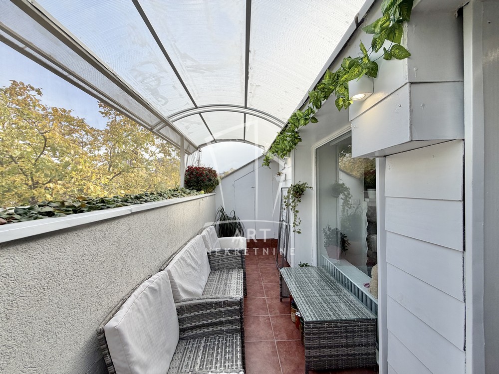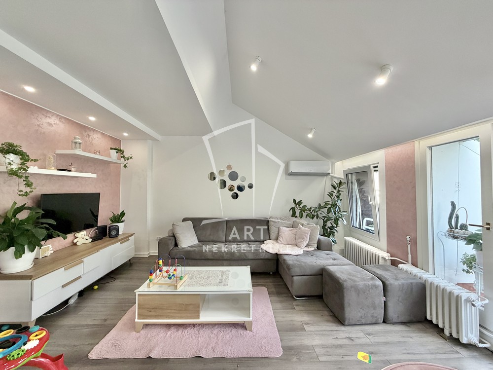 U prelepom naselju Cerak Vinogradi ulica Cerski Venac prodaje se odličan, svetao potpuno renoviran dvosoban stan uknjižen na 49m2 grejne površine, a mereno ukupno 57 m2 (velika lođa I ostava nije ušla u kvadraturu stana).Stan je renoviran pre 5 godina I postavljena je aluminijumska stolarija,zamenjena elektro I vodna istalacija,novo kupatilo I kuhinja,podna obloga,sigurnosna vrata I zastakjena lođa.Stan se sastoji od dnevne sobe,trepezarije,kupatila ,spavaće sobe ,predivne lođe I pripadajuće ostave na spratu.Postoji mogućnost poširenja lođe za 11 m2.Stan se nalazi u odličnoj održavanoj zgradi, okružena sa puno zelenila a ispred nje je veliki parking sa dosta mesta za parkiranje.Mikro lokacija je izuzetna.U blizini je poznata Vidikovačka pijaca,igrališta za decu,vrtići I osnovne škole,Lidl.brz izlaz na auto-put.