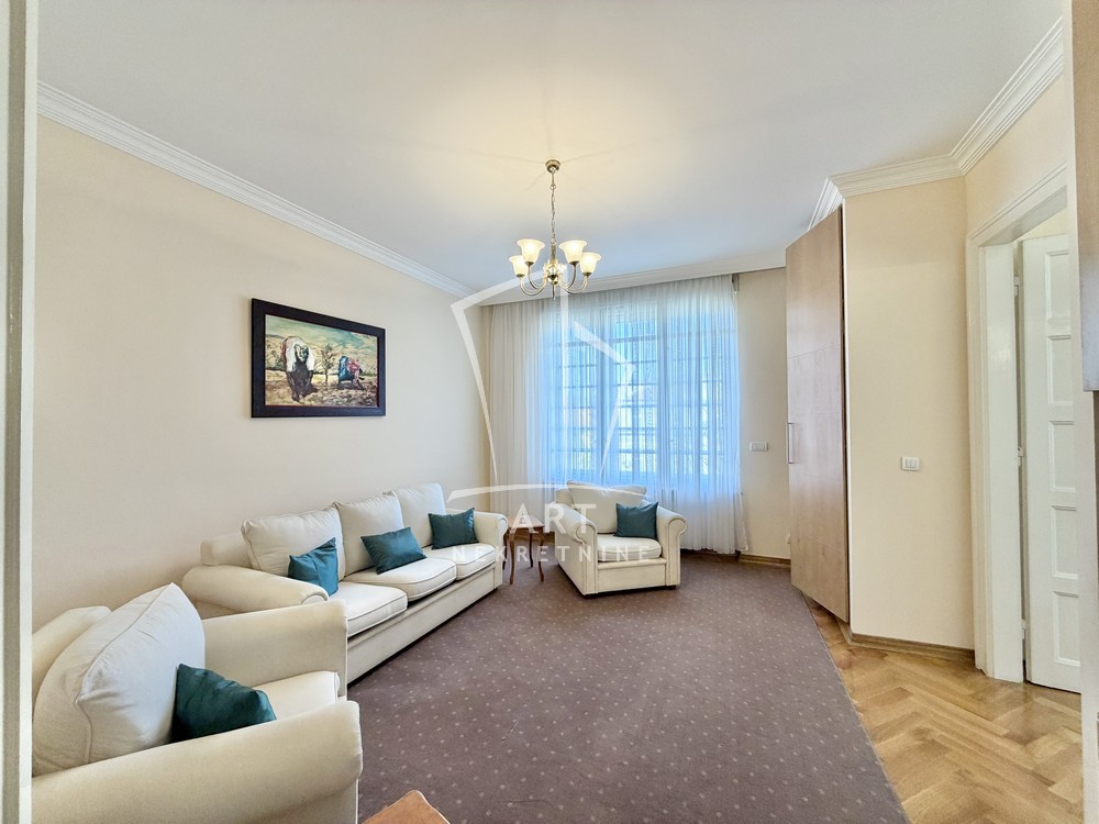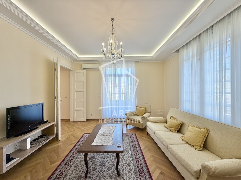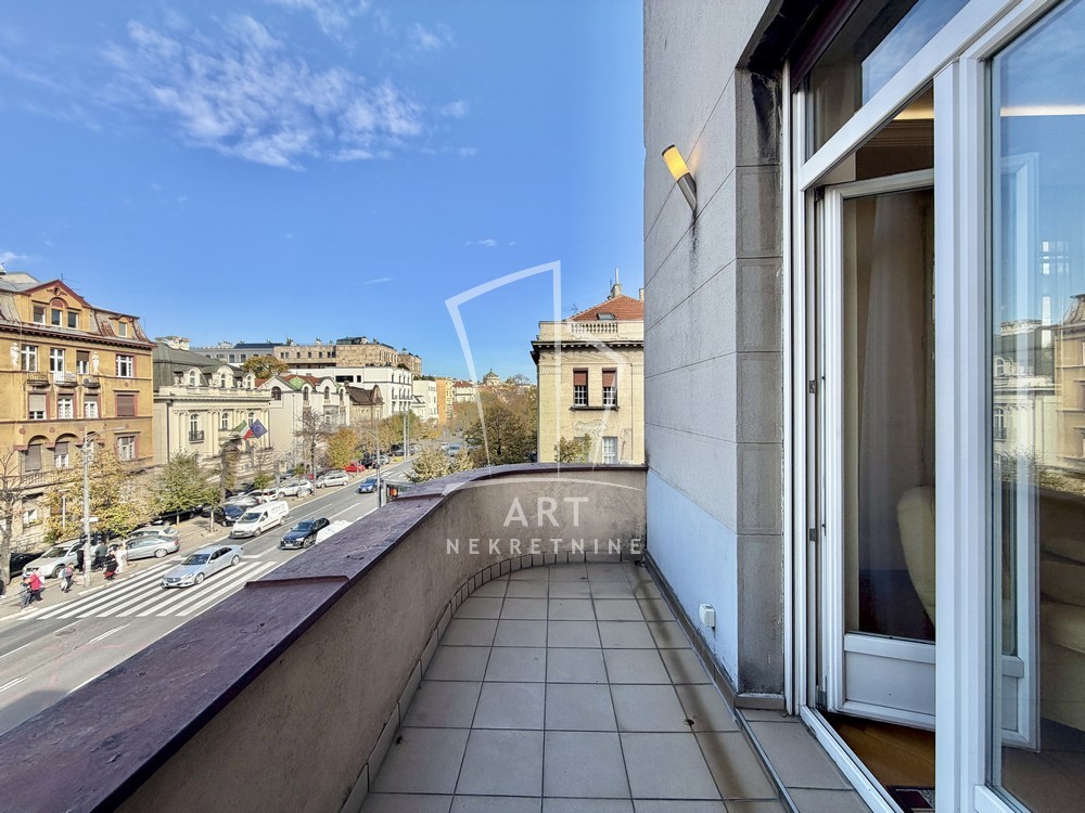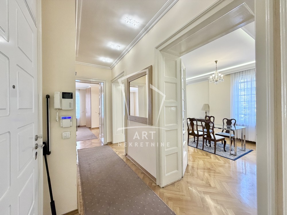 Luksuzan salonski stan površine 100m2, koji se nalazi u srcu Beograda, u ulici Knez Miloša – jednoj od najprestižnijih i najlepših gradskih lokacija.