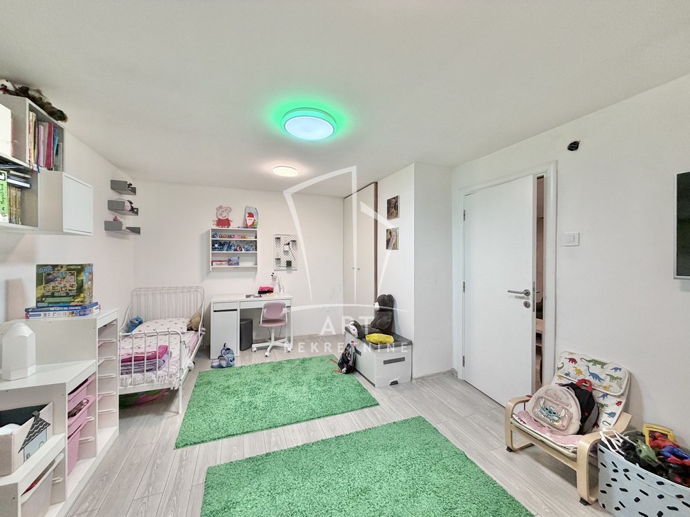 Originalno jednosoban 36m2, sa dozvolom stanara proširen na dvoiposoban od 90m2 sa uračunatom velikom terasom (71+19m2 terasa).