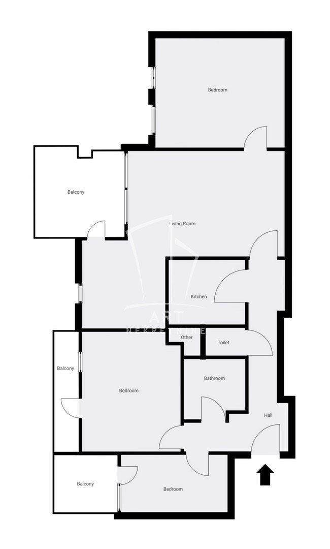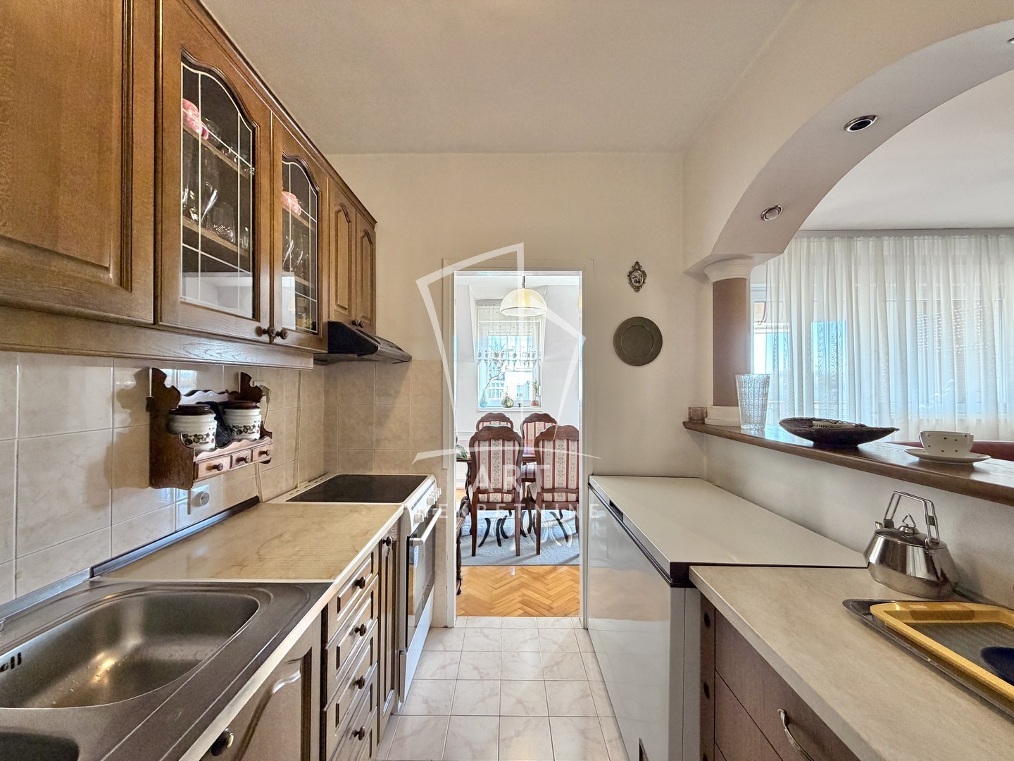 Prostorije: hodnik, tri spavaće sobe, dnevna soba, kuhinja, trpezarija, toalet, kupatilo i 4 terase.