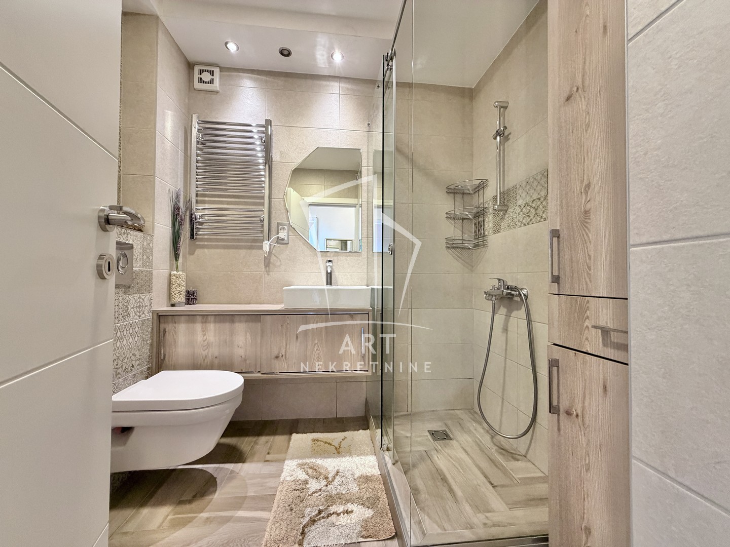 Mogućnost proširenja u dupleks jer poseduje dozvolu za nadogradnju iznad stana od 56m2 i taj prostor pripada samo ovom stanu.
