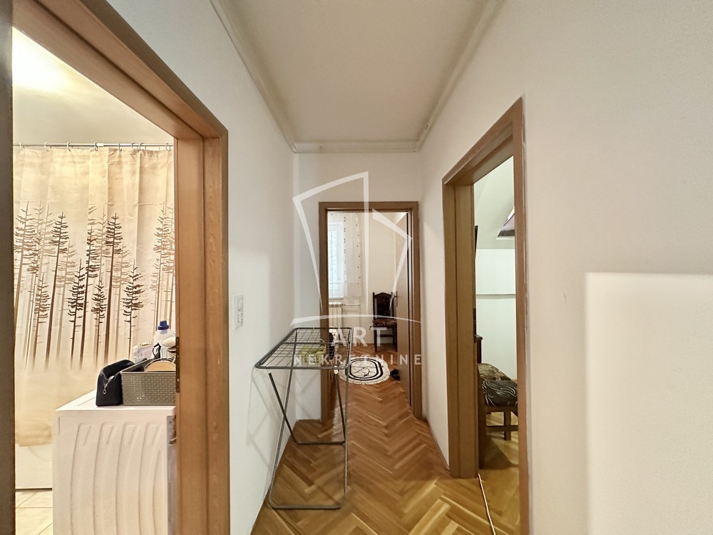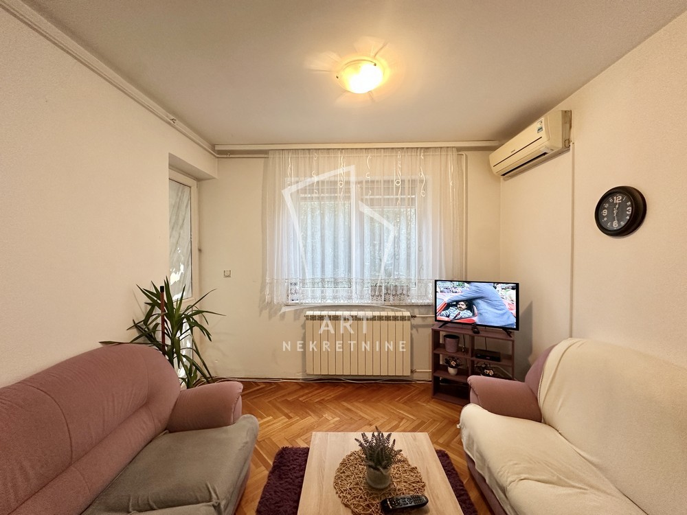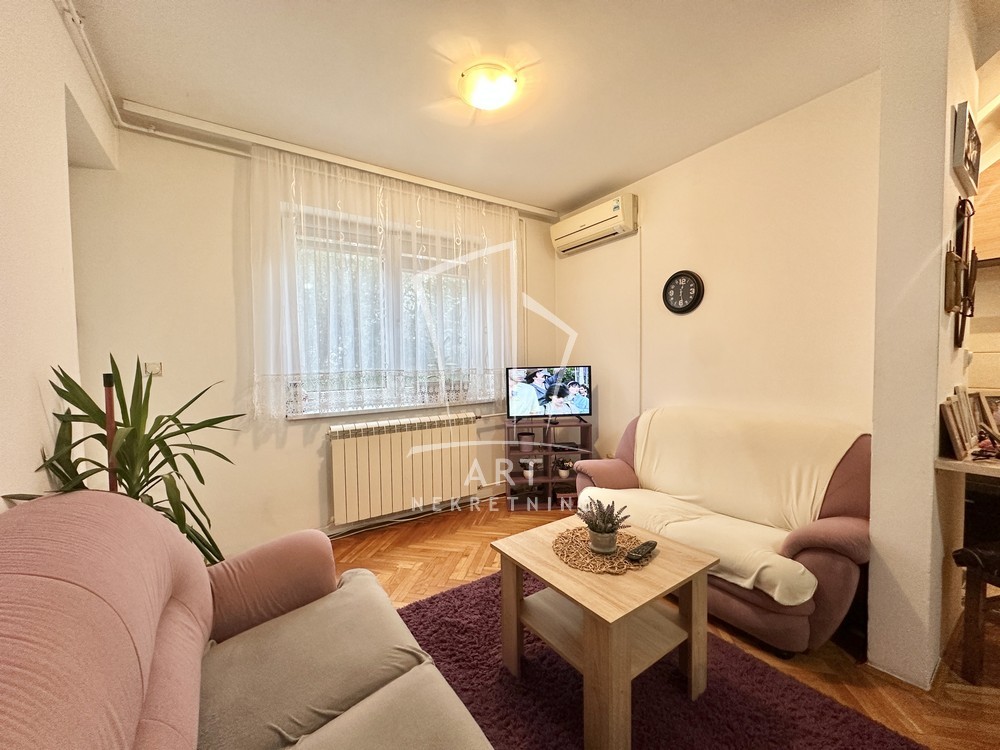 Stan poseduje dnevnu sobu koja izlazi na terasu, kuhinju, dve spavaće sobe, kupatilo.