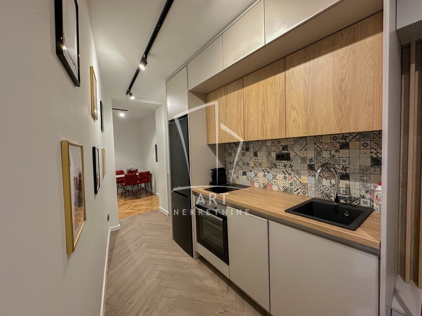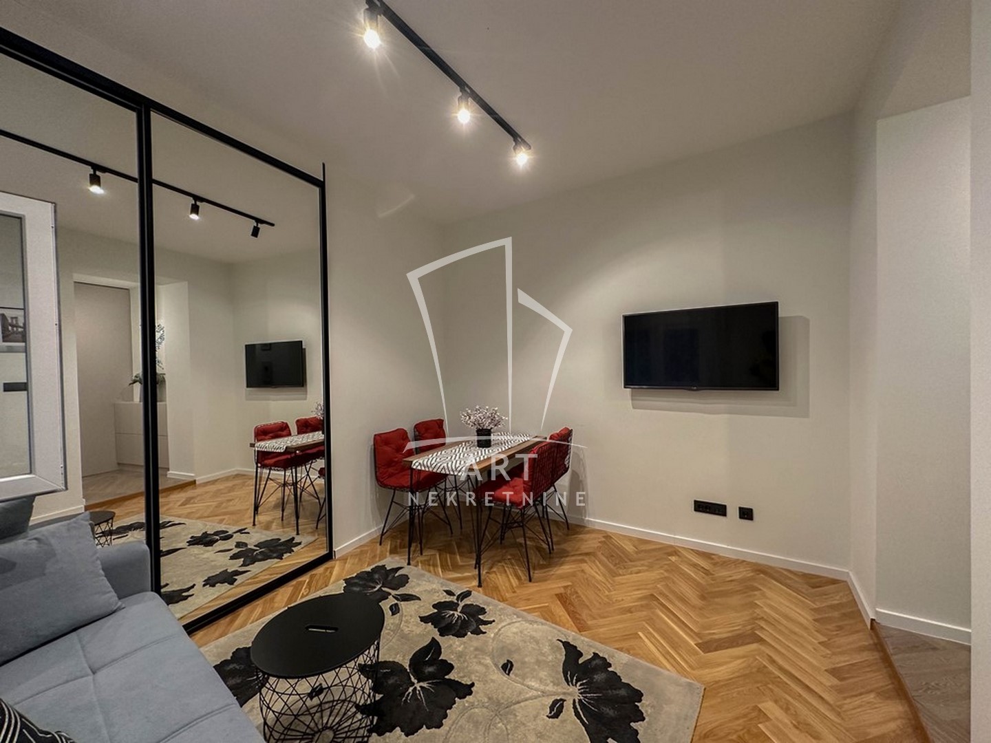 U lepoj salonskoj zgradi, u blizini Kralja Petra, nalazi se ovaj kompletno renoviran i namešten stan, Pozicioniran suprotno od ulice, a sa pogledom na lepo zeleno dvorište garantuje mir i privatnost u centru grada.