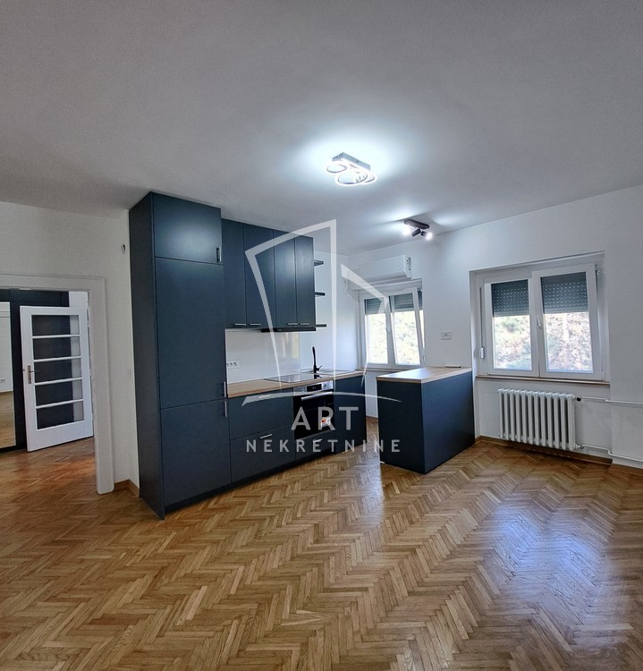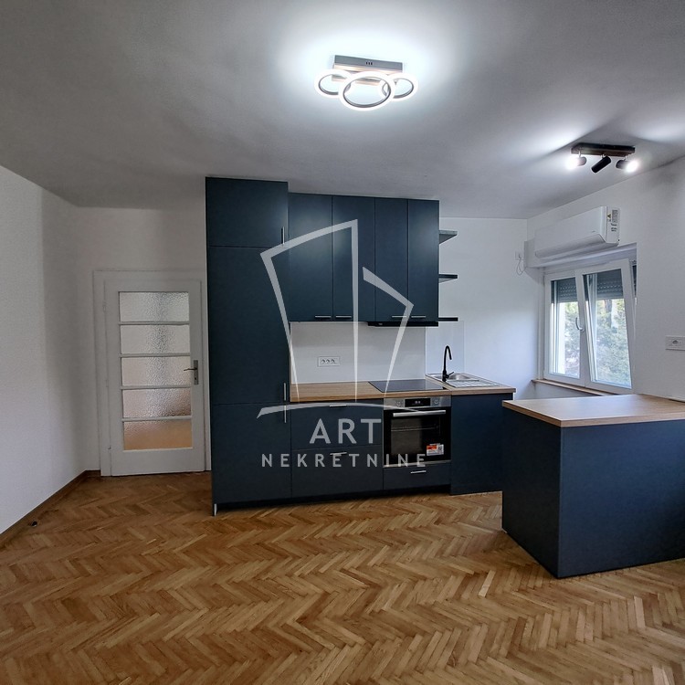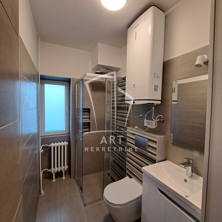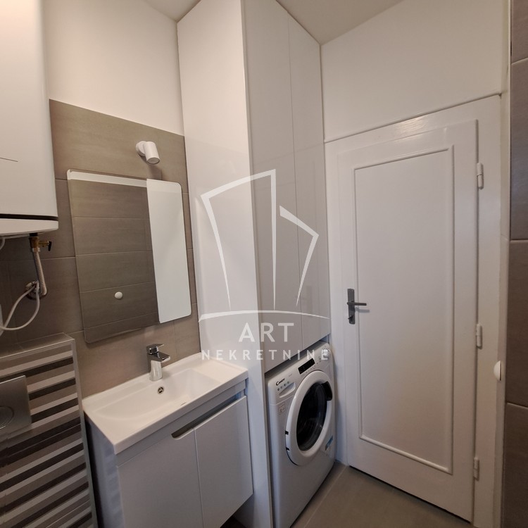 Renoviran je, novo kupatilo i kuhinja opremljeni su veš mašinom i mašinom za pranje sudova. U hodniku je ugradni plakar.