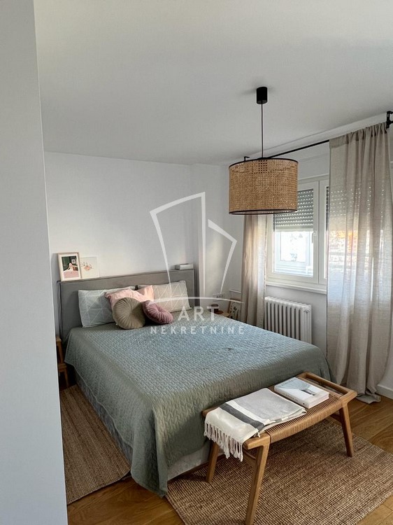 U prilici smo da ponudimo za izdavanje renoviran, potpuno namešten i sa ukusom sređen stan, na odličnoj lokaciji na Novom Beogradu, nadomak Savskog šetališta. Stan je izuzetno svetao, dvostrano orijentisan i nalazi se u održavanoj zgradi starije gradnje, koja je okružena zelenilom i parkovima.