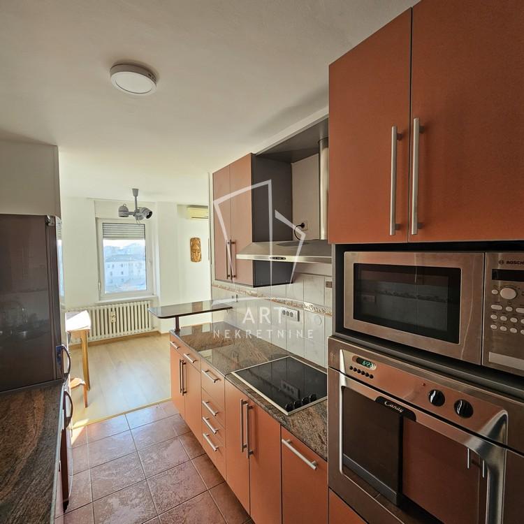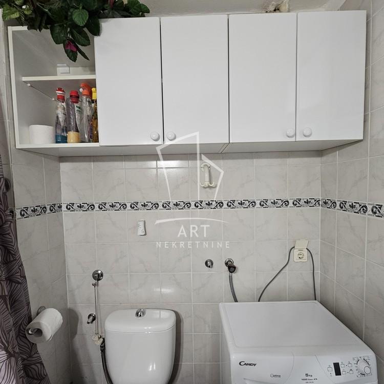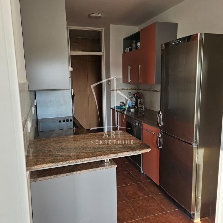 Kuhinja, predsoblje i kupatilo su u potpunosti opremljeni, uz dosta ugradnih plakara i ormara za odlaganje, a moguće je po potrebi dodati i trpezarijski sto. Od uređaja, u stanu su veš i sudo mašine, klima, šporet, frižider, mikrotalasna.