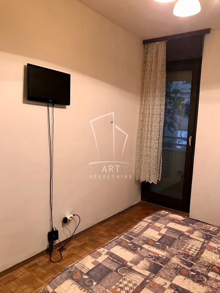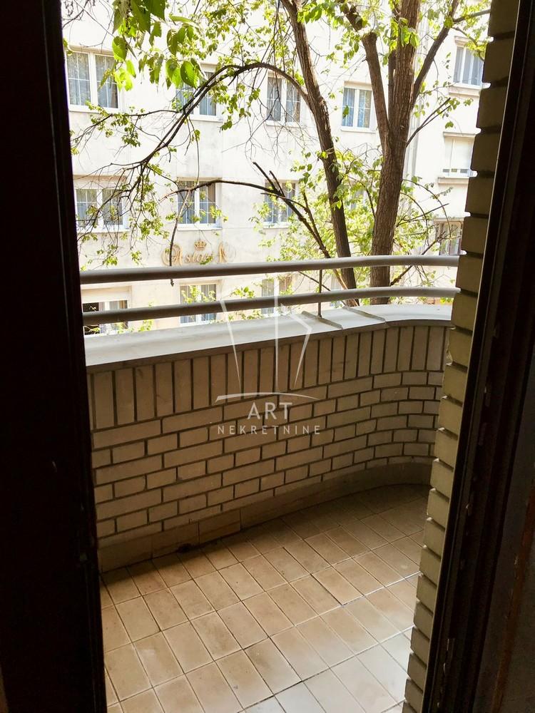 Potpuno namešten stan na Savskom trgu u samom centru Beograda, u mirnoj ulici punoj zelenila. Stan ima 60m2, jednu veliku spavaću sobu i jednu pomoćnu sobicu koja može da se adaptira u malu spavaću ili radnu sobu, kao i ogromnu dnevnu sobu.