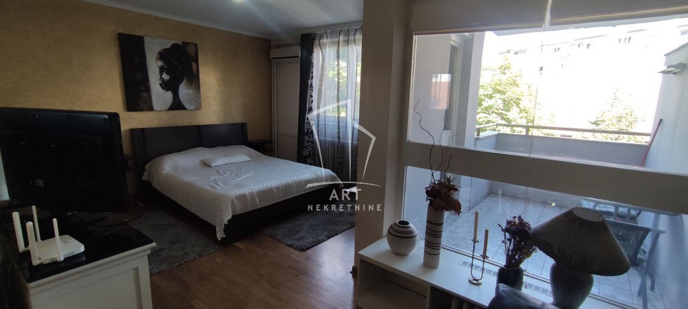 Stan apartmanskog tipa u mirnoj ulici na Dorćolu. Kompletno opremljen stvarima za svakodnevni život.