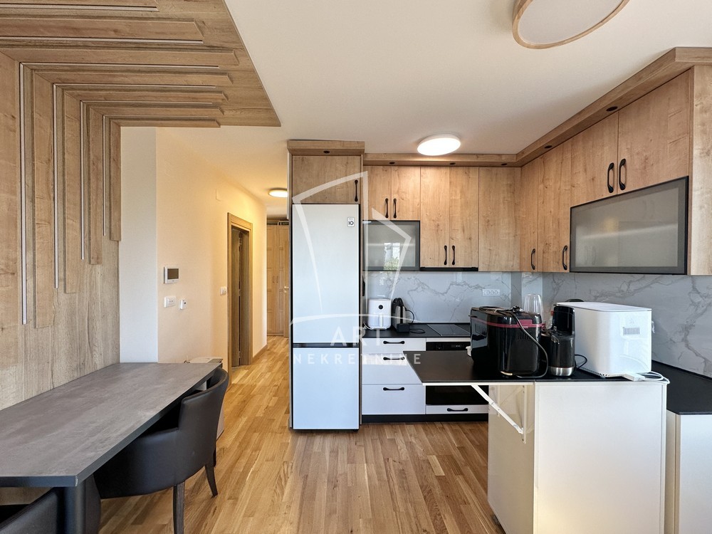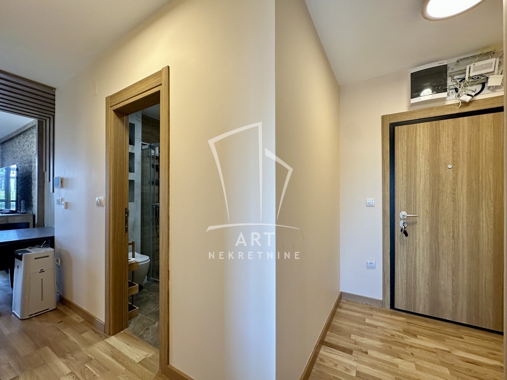 Prostor se sastoji iz hodnika, dnevnog boravka sa kuhinjom i trpzarijom, spavaće sobe i terase.