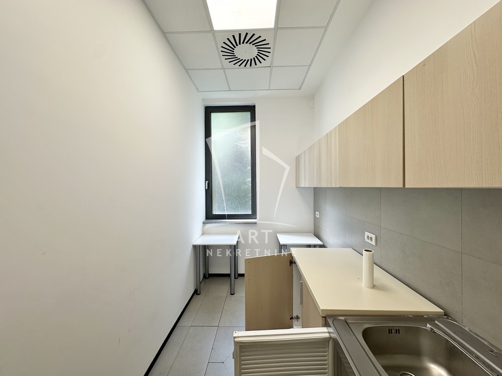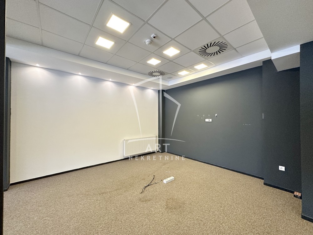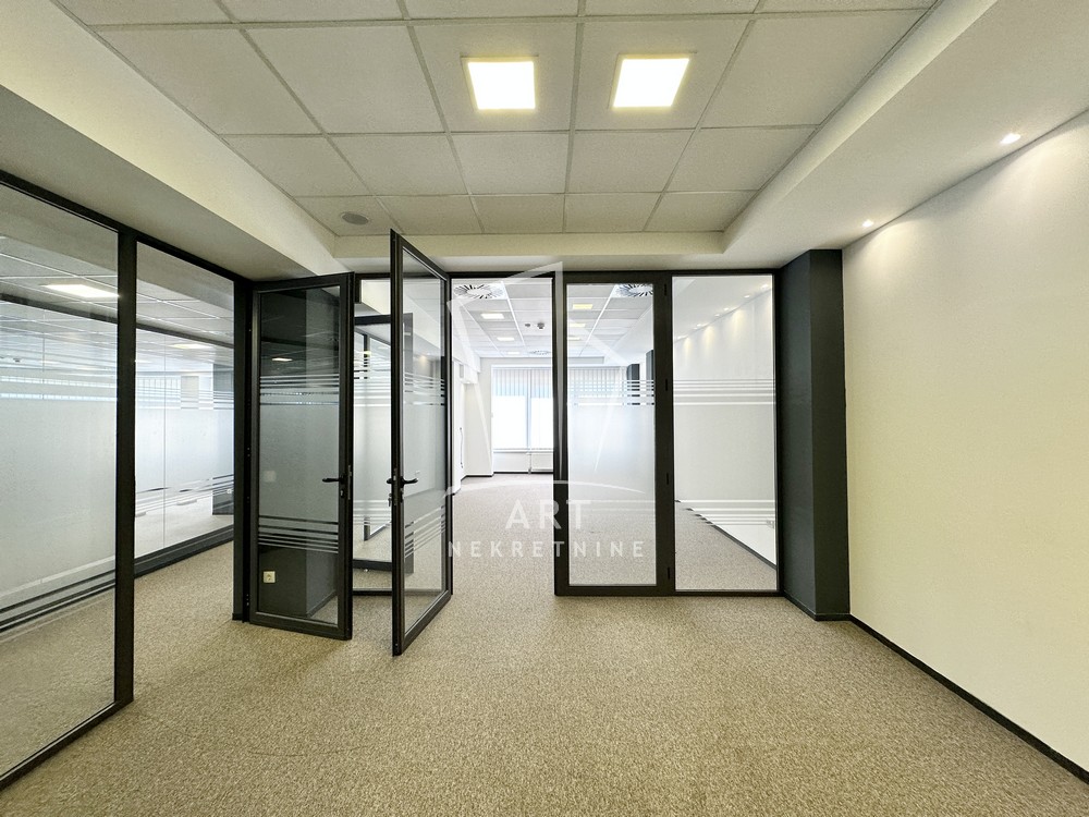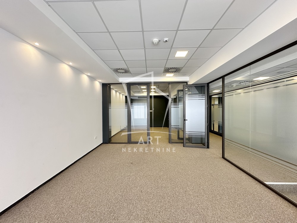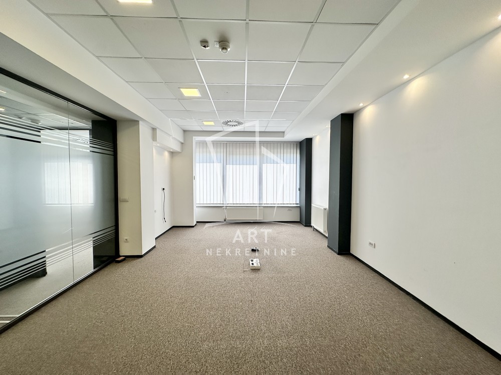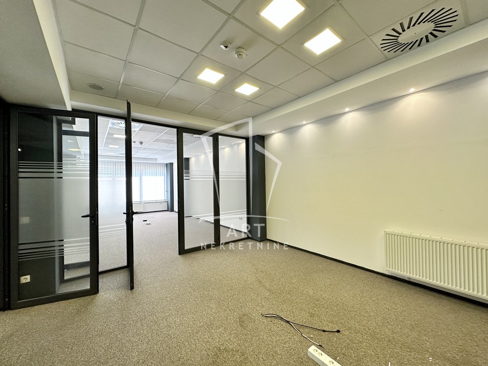 Odličan poslovni prostor u modernoj poslovnoj zgradi u blizini Paviljona na Novom Beogradu. Nalazi se na drugom spratu i sastoji se od 7 kancelarija,kuhinje,direktorske kancelarije i konferensa. Ima dosta otvorenog prostora i postoji mogućnost prilagođavanja prostora potrebama budućeg zakupca. Prostor je izuzetno komforan i svetao.Svi kablovi su sprovedeni ispod duplog poda. Zgrada ima 2 lifta i prijemni hol sa deskom. Uz prostor idu i 3 parking mesta. Postoji mogućnost zakupa dodatnih mesta. Odličan prostor.
