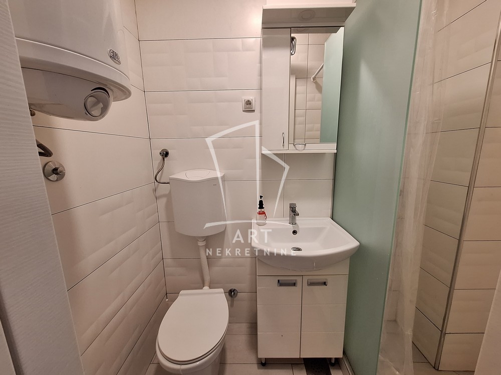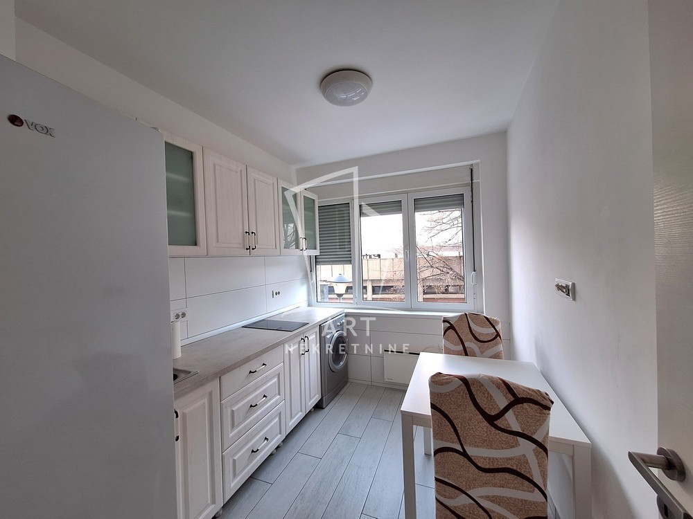 Jednosoban, 30 m2, renoviran, svetao, zapadno orijentisan. Izdaje se namešten kao na fotografijama. Kompletno opremljen za život. Nalazi se na prvom spratu održavane zgrade sa liftom. Grejanje je etažno, norveški radijatori.
