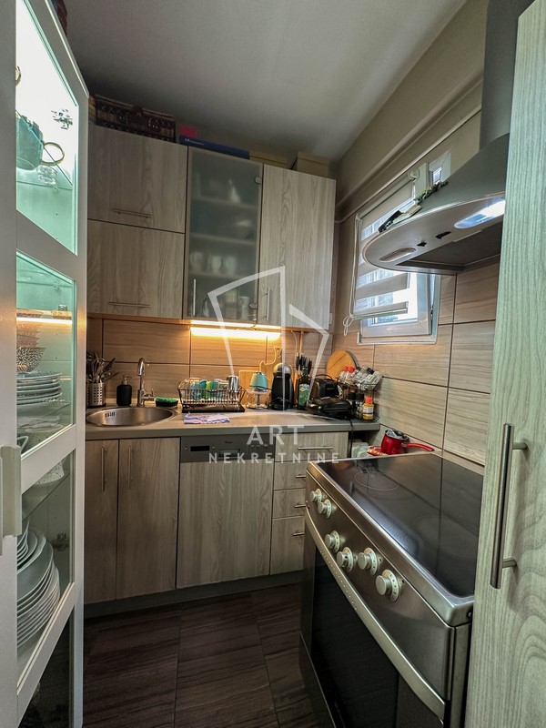 Stan se sastoji od ulaznog hodnika,kuhinje,trpezarije,dnevnog boravka,tri spavaće sobe i kupatila.U stanu ostaje ugradna kuhinja i ugradni američki plakar.