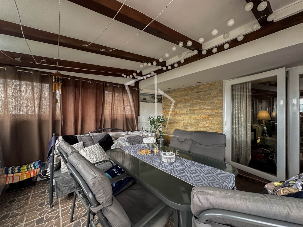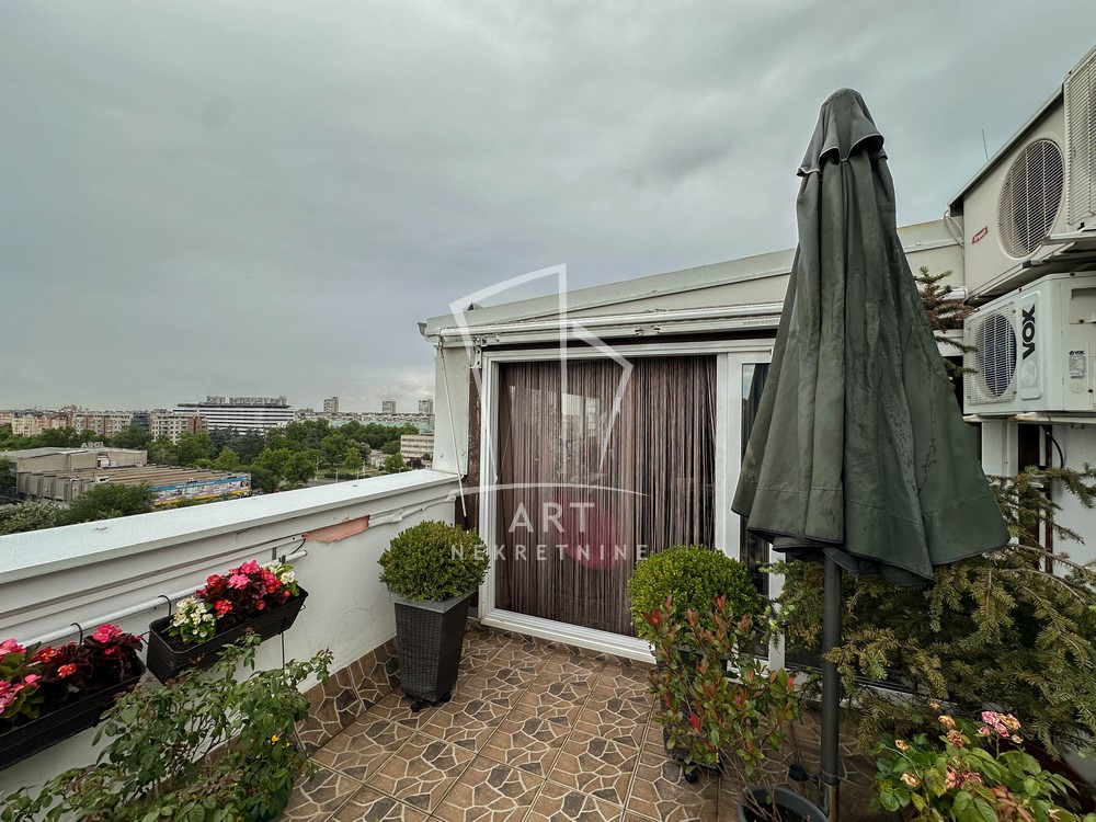 Odličan stan ukupne površine 105m2, od čega je terasa 37m2. Jedan deo terase je zastakljen koji funkcioniše kao zimska bašta sa prelepim panoramskim pogledom na grad i Gardoš kulu,a drugi deo terase je otvoren. Uknjiženo je 38m2 a 30m2 je dobijeno proširenjem na deo terase sto čini ukupno grejne površine 68m2.