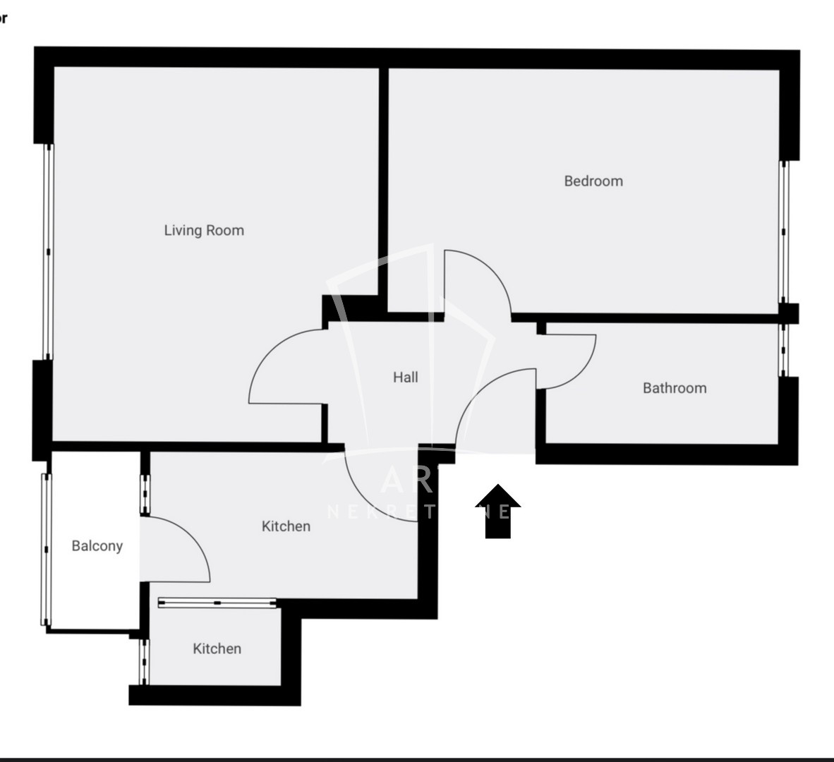 Ulazni hodnik, kuhinja, dve sobe, kupatilo, lođa.