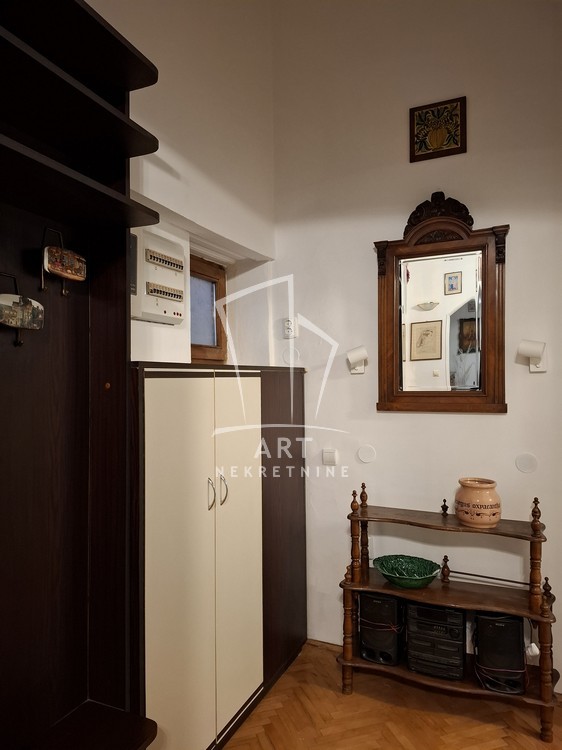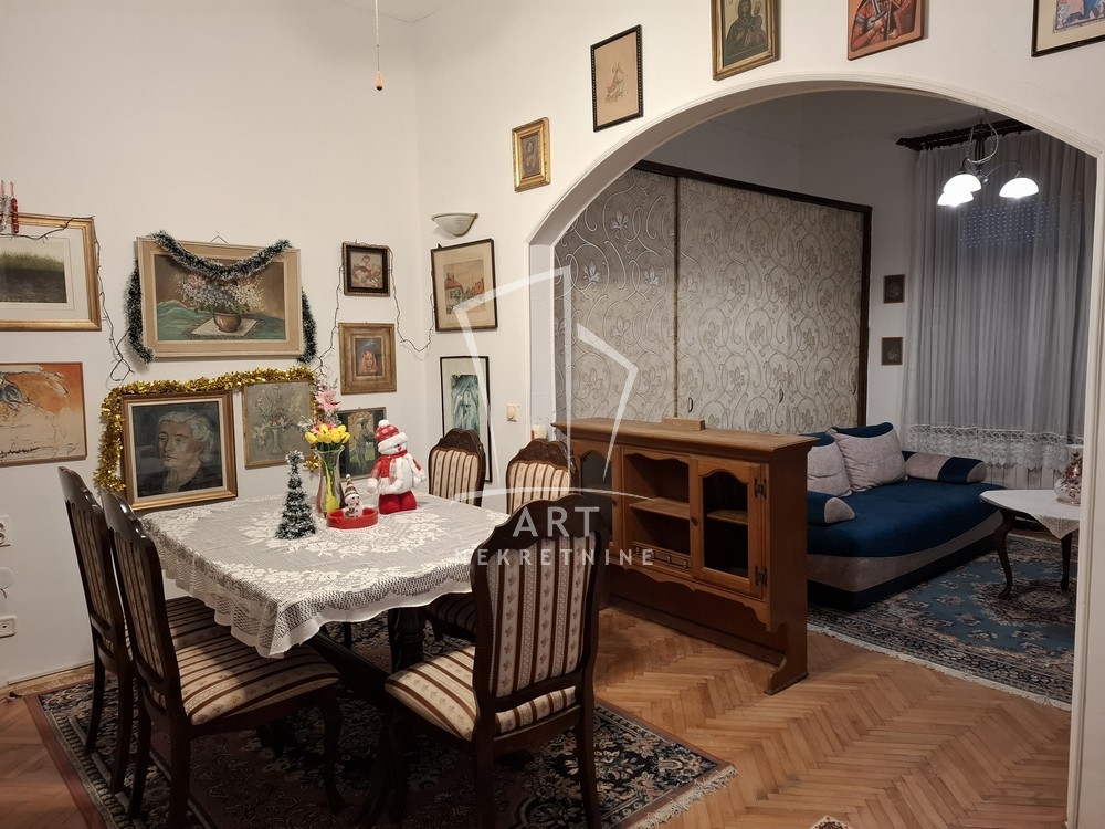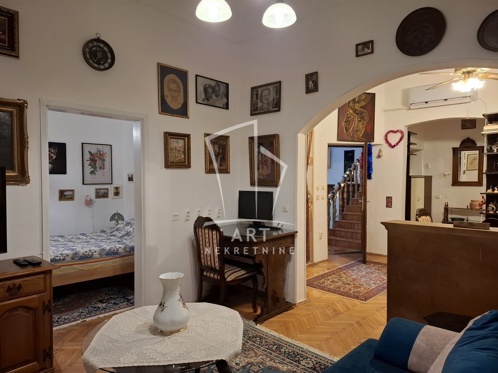 Na centralnoj gradskoj lokaciji, na Dorćolu, nalazi se lep stan od 55m2 sa posebnim ulazom, a u okviru kuće koja je uknjižena na 245m2. Sastoji se od ulaznog dela, trpezarije, dnevnog boravka, opremljene kuhinje, spavćce sobe i kupatila.