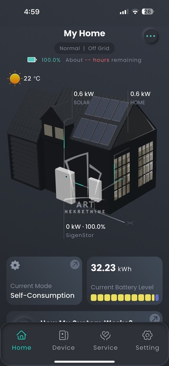 Električna energija se dobija od solarnih panela, s obzirom da je brend eco-friendly. Marka je Sigenergy (austrijska marka), dok su same baterije iz Koreje. Sigenergy je jedan od vodećih brendova za same solarne sisteme. Solarna mreža je ujedno i nadstrešnica za automobile - te su 3 od 4 postojeća parking mesta natkrivena. Solarni sistem ima 32 kilovata snage, dok je izlazno 20 kilovata.