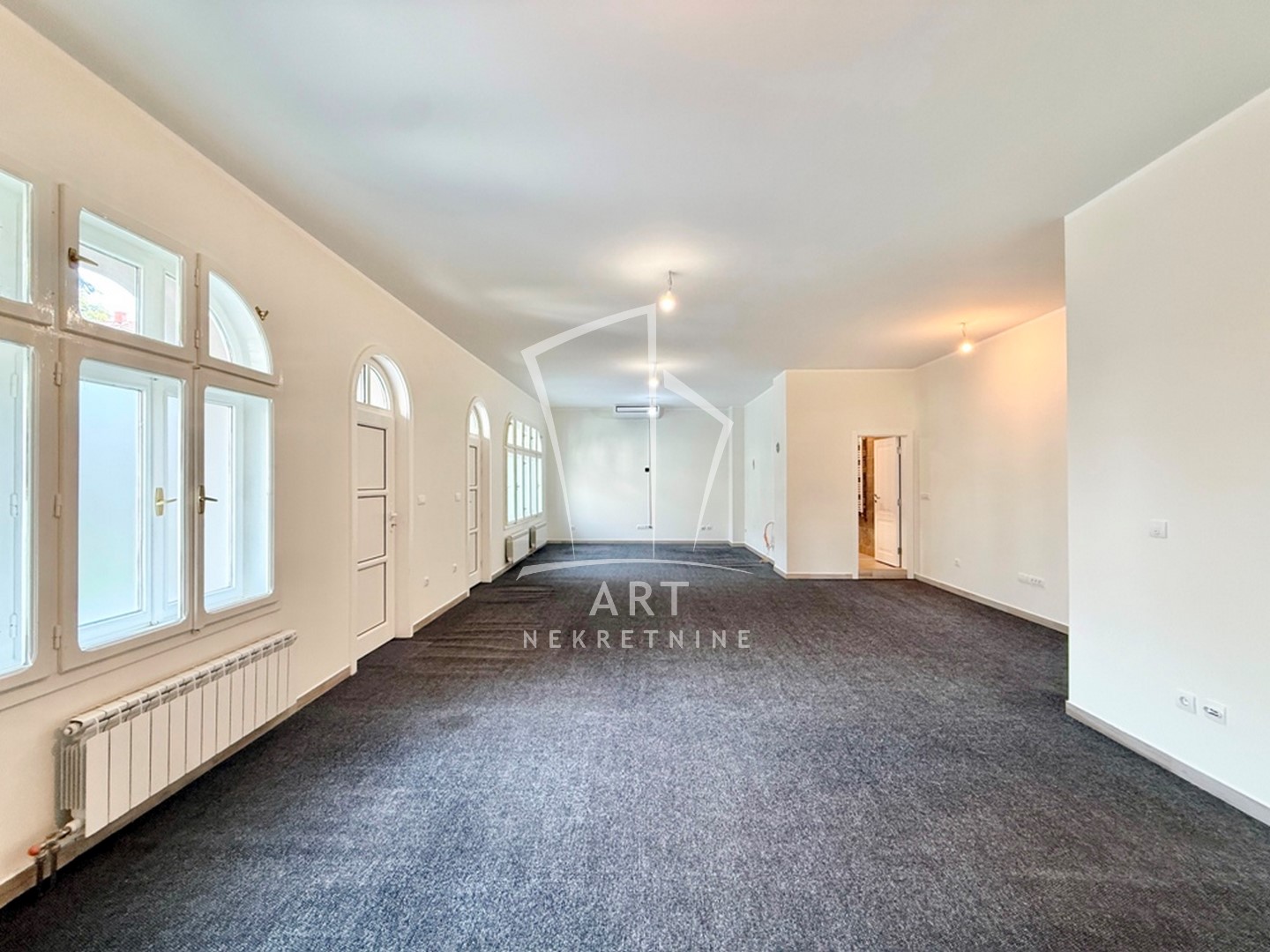Zgrada je salonskog tipa i prostire se na 3 etaže - 2 prostora od po 155m2 i 2 prostora od po 65m2.