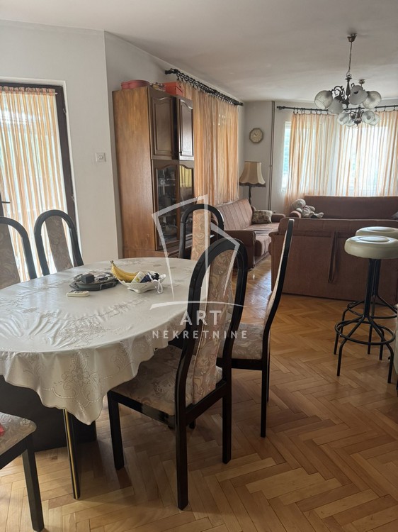 Porodična kuća od 363m2, pogodna je i za poslovne subjekte. Dvorište je veliko (12ari), ograđeno i ima dosta parking mesta unutar dvorišta i ispred kuće.