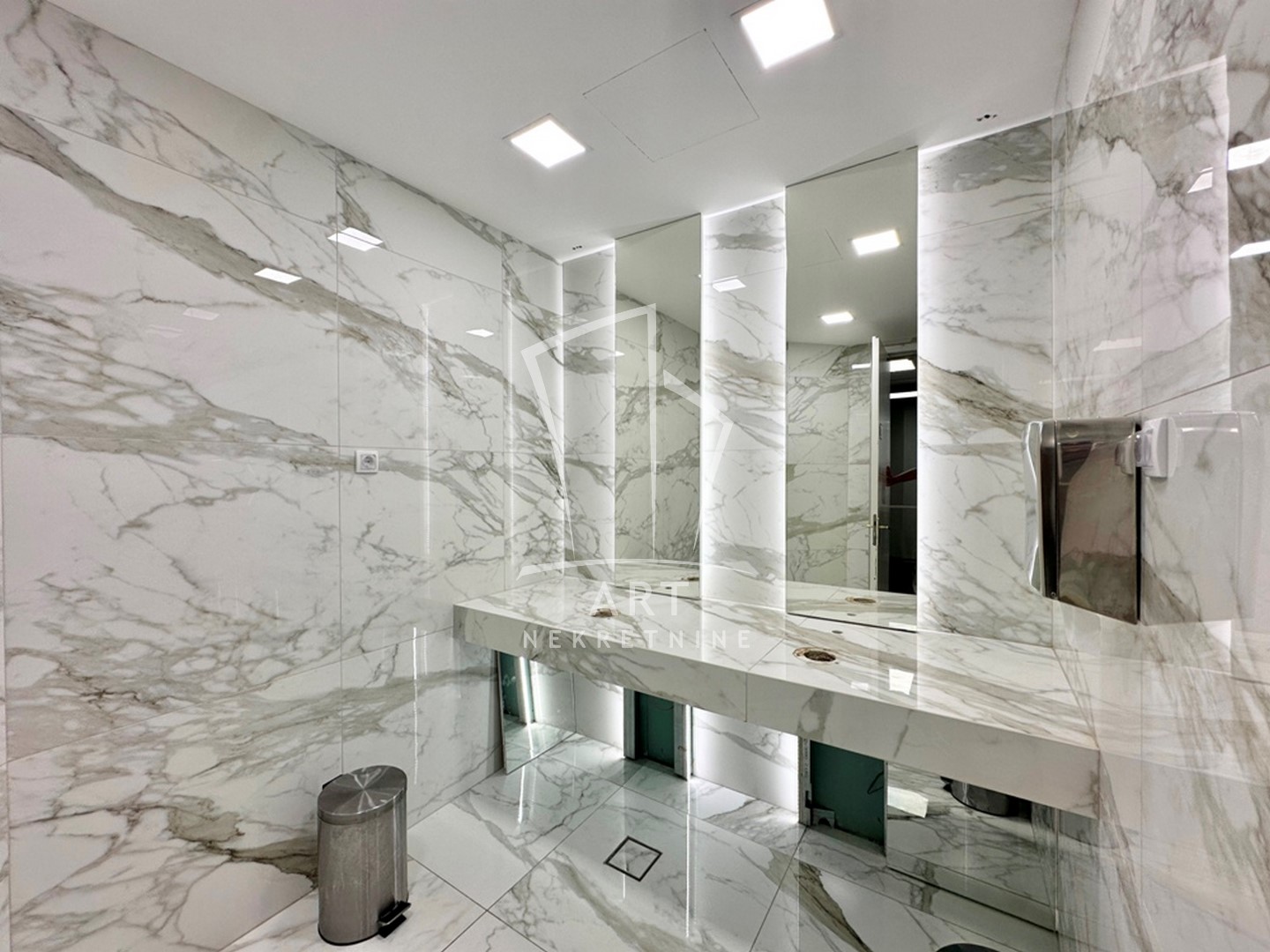 Prostor od 690 m2 se nalazi na prizemlju poslovne zgrade u srcu poslovne zone Novog Beograda. Odlično je povezan sa svim delovima grada kao i aerodromom. Prostor se sastoji od 17 kancelarija različitih veličina,prijemnog deska,kuhinje,muških i ženskih toaleta. Prostor će biti okrečen i biće postavljeni novi itisoni. Postoji mogućnost dodatnog pomeranja pregrada kako bi se prostor prilagodio potrebama budućeg zakupca.Izuzetno funkcionalan i prozračan prostor.Grejanje i hlađenje je pomoću fan coila,zgrada poseduje 24/7 službu obezbeđenja kao i veliki prijemni pult. Veliki broj internet operatera je prisutan u zgradi. Postoji mogućnost zakupa parking mesta koje se dodatno naplaćuje. Odličan prostor na odličnoj lokaciji.
