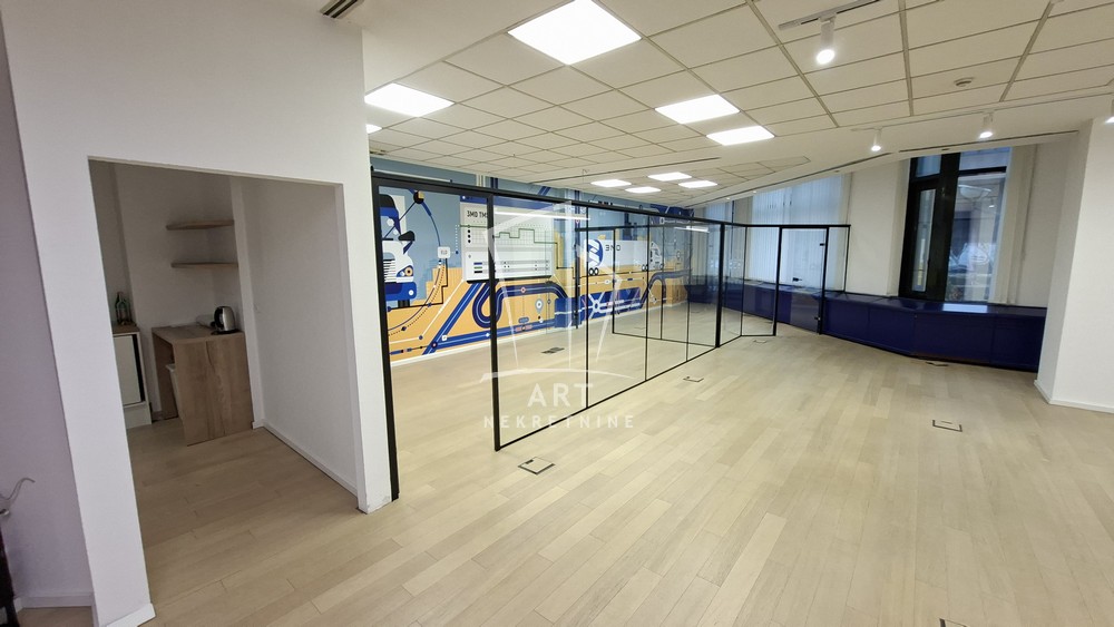 Prostor od 128m2 se nalazi na mezaninu poslovne zgrade u srcu poslovne zone NovogBeograda. Odlično je povezan sa svim delovima grada kao i aerodromom. Prostor se sastoji od 4 kancelarije,ali se može prilagođavati budućem zakupcu prema njegovim potrebama.