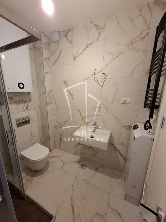 Sastoji se od ulaznog hodnika, dnevne sobe sa kuhinjom, spavaće sobe,kupatila i terase. Mereno 51m2.
