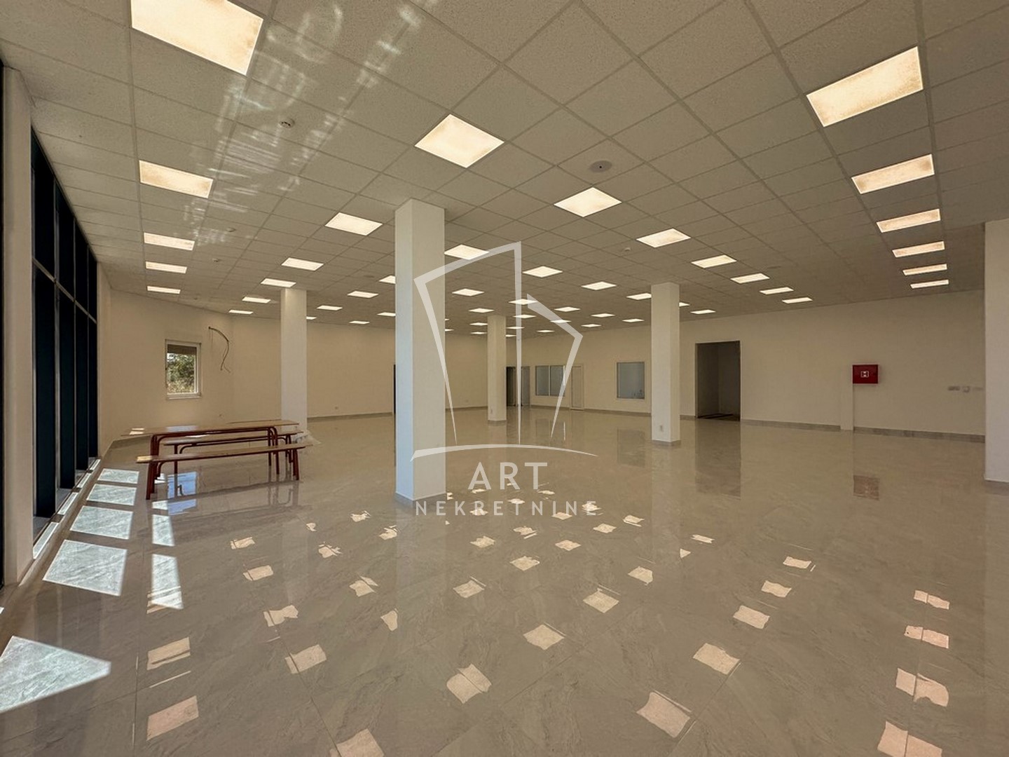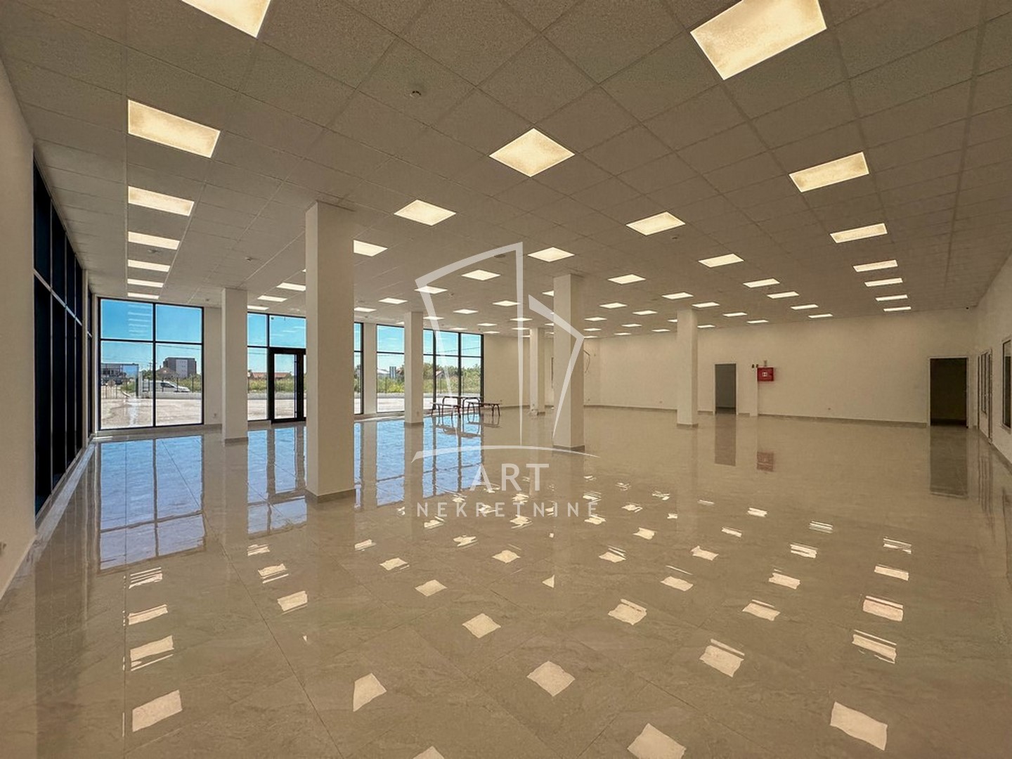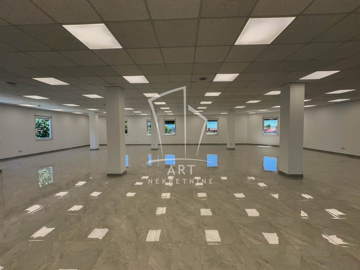 2. Lokal 350m2 Prizemlje: 3.5m visina. Open-space prostor, salon +2 kancelarije, kuhinja i trpezarija, dva toaleta (muški i ženski), italijanska keramika, ekstra lux. podno grejanje,postoji klimatizija (hladjenje i grejanje)