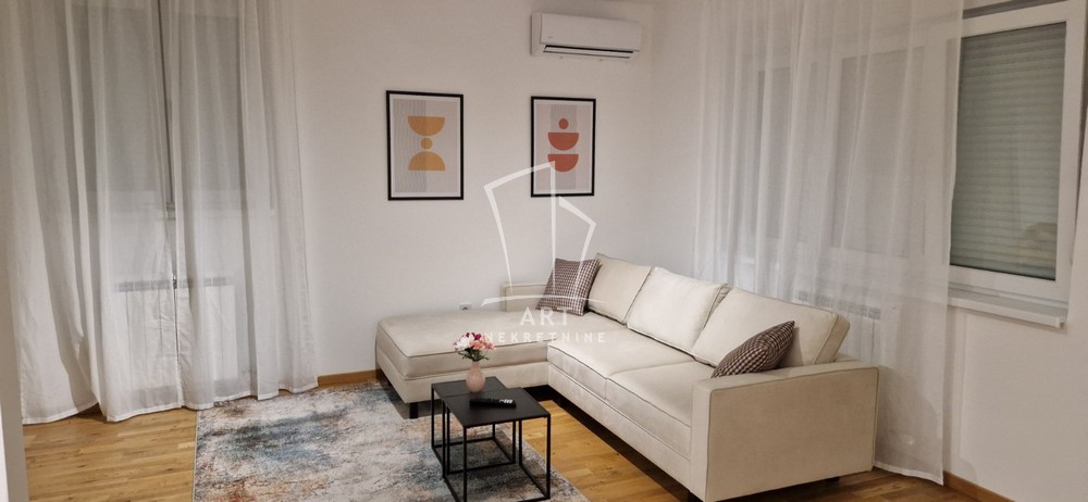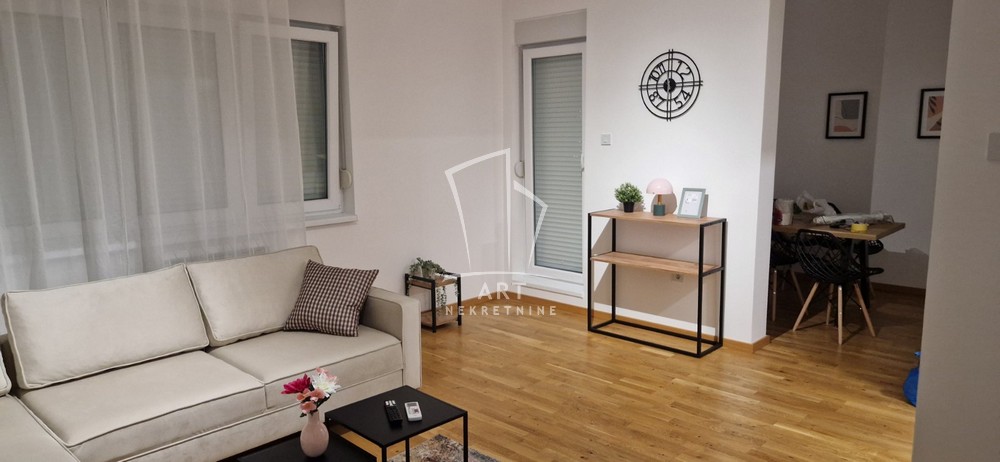Stan se sastoji od spavaće sobe, kupatila i prostranog dnevnog boravka sa odvojenom trpezarijom i kuhinjom.