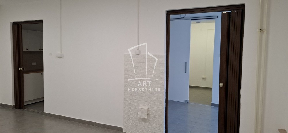 U neposrednoj blizini IMMO Centra izdaje se renoviran i funkcionalno organizovan poslovni prostor merene površine 75 m2, sa visinom plafona od 3 m, smešten u prizemlju solitera. Prostor je raspoređen u 8 odvojenih celina – šest radnih prostorija, kuhinja i kupatilo – što omogućava fleksibilnu organizaciju različitih delatnosti.