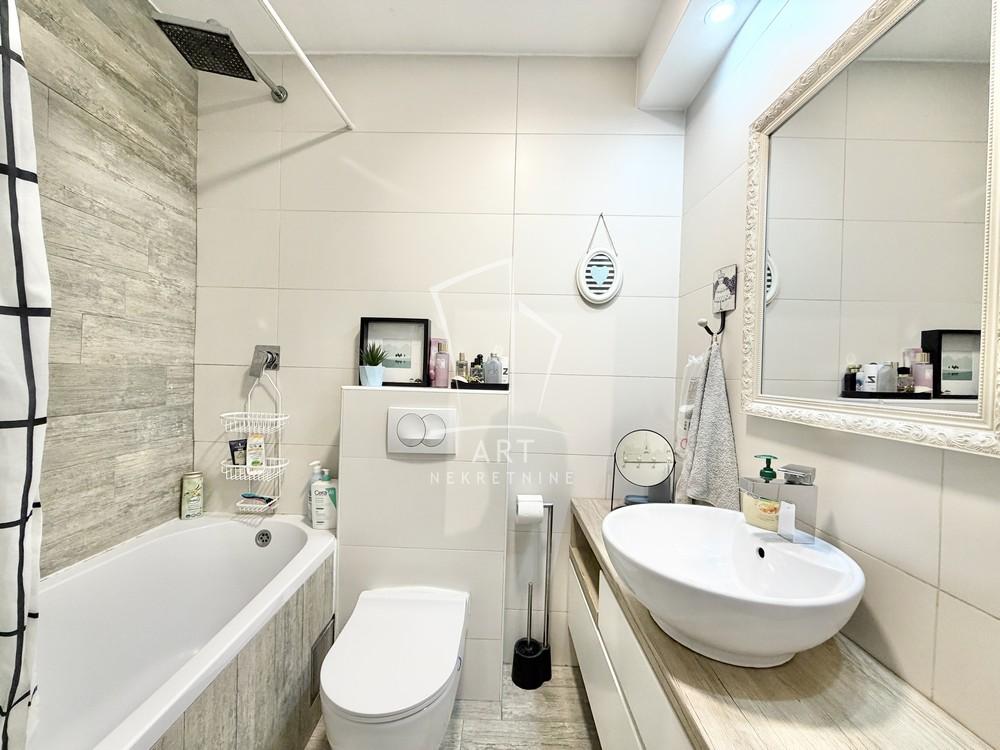 Stan je kompletno renoviran, zamenjene sve elekto i vodovodne instalacije, postavljena PVC stolarija renomiranog proizvodjača REHAU, zamenjena unutrašna stolarija. Ugradni nameštaj vrhunskog kvaliteta je uračunat u cenu.