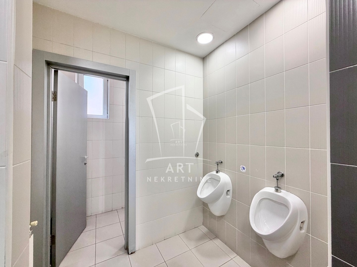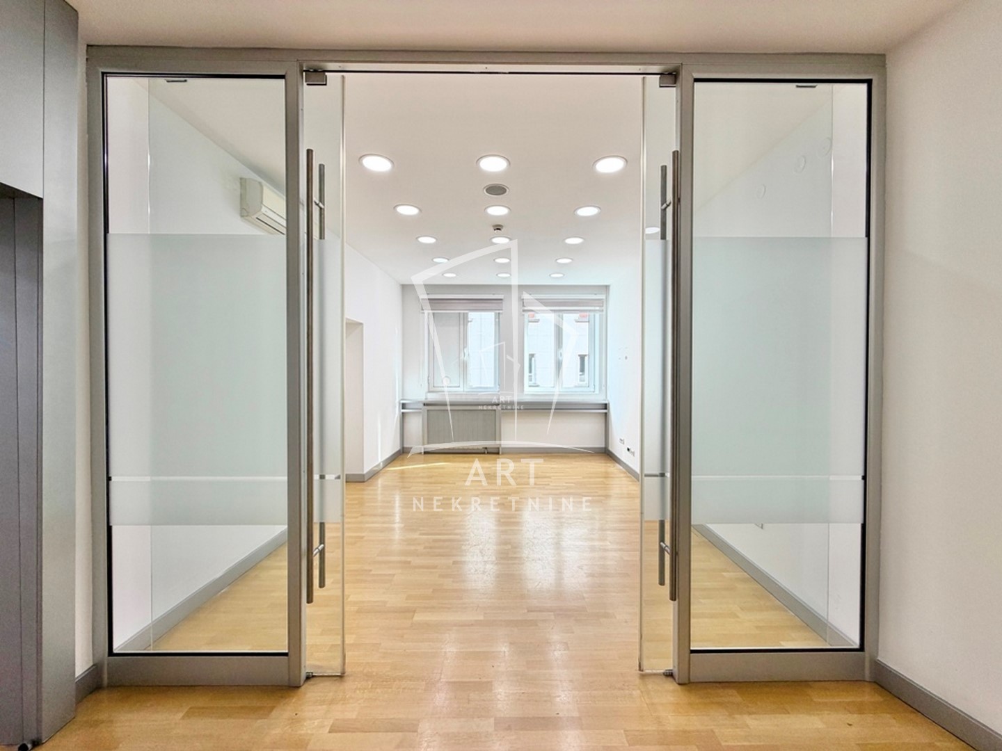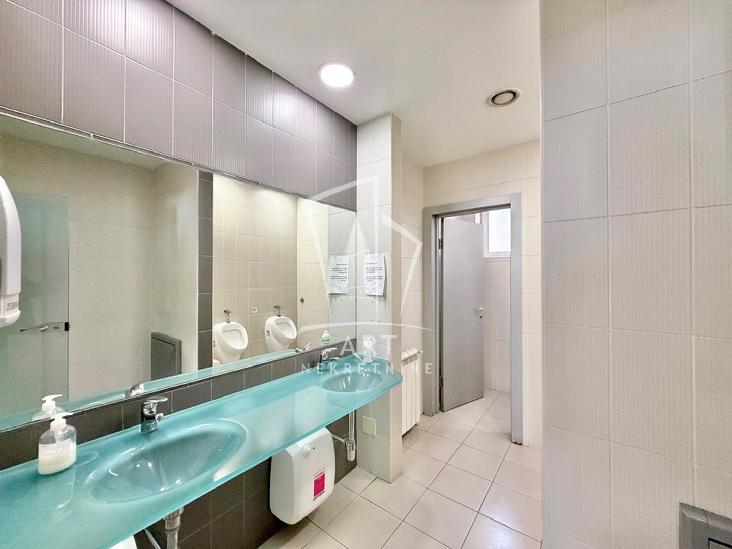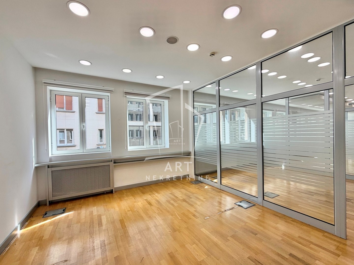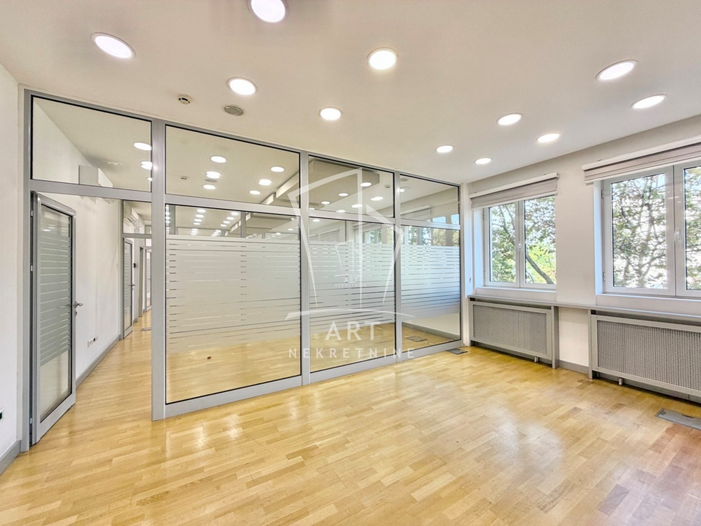 Prostor se dodatno može prilagođavati potrebama zakupca, pošto su pregrade aluminijum staklo. Ima dva ulaza i nalazi se sam na spratu.Optički internet je dostupan u zgradi. Prostor će biti ogrečen i očišćen pre ulaska novog zakupca.Servisni troškovi su 5.55 Evra/m2
