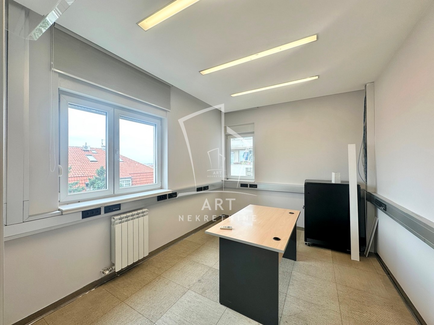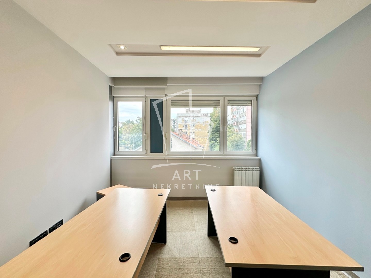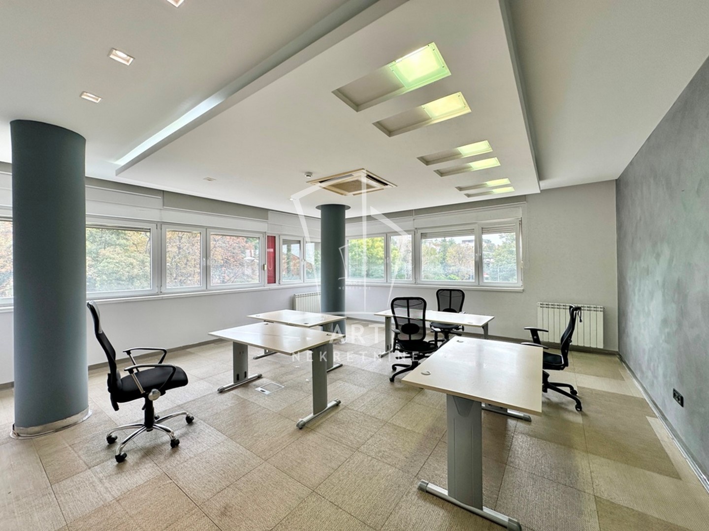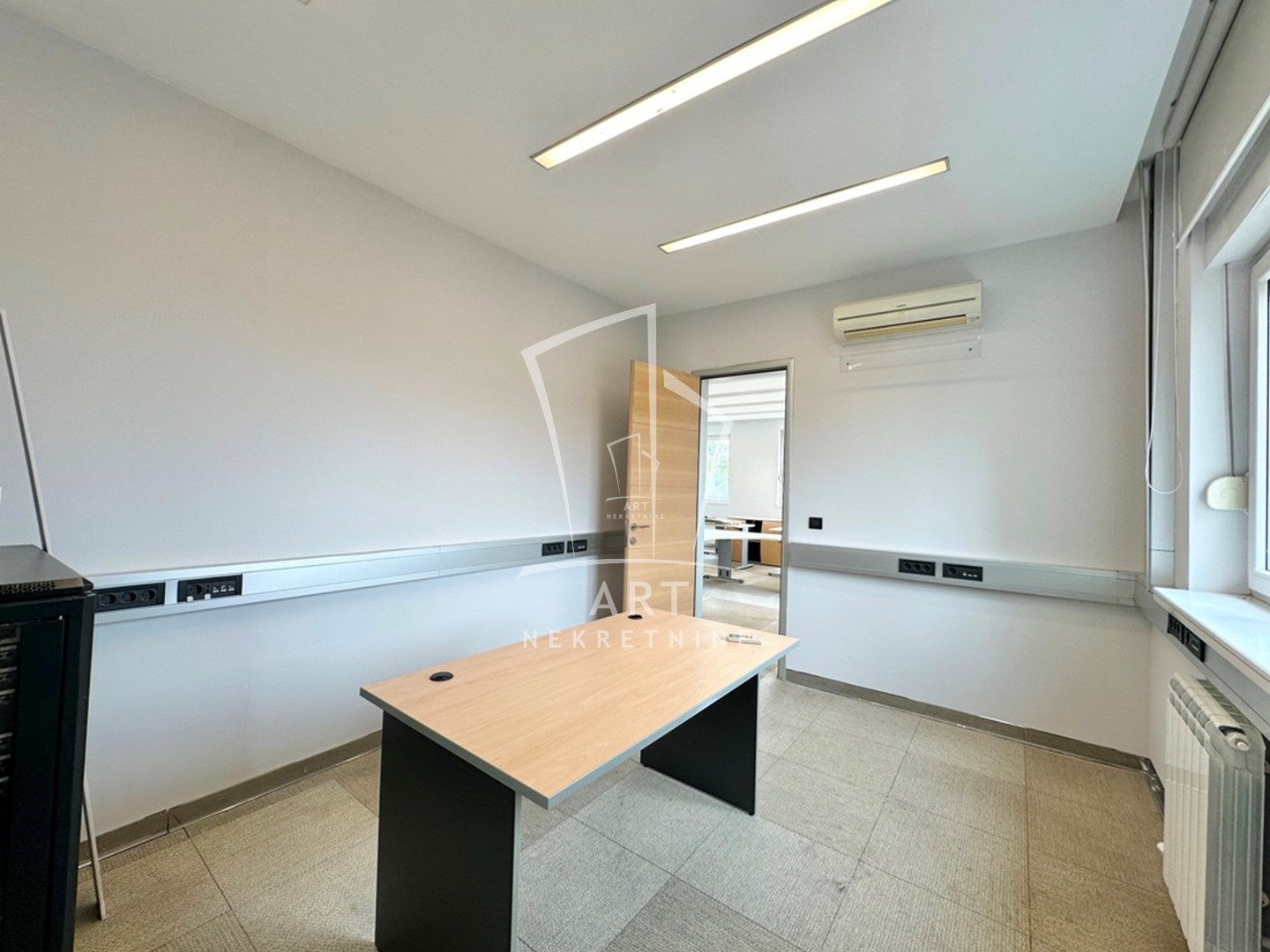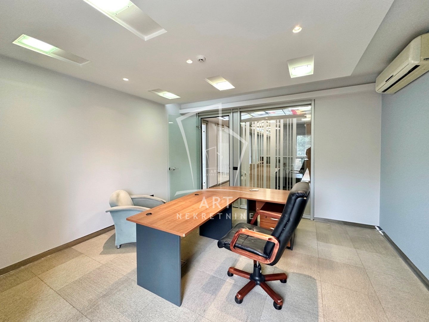 Opremljen je kancelarijskim nameštajem, ali može biti i prazan. Prostor je izuzetno svetao, komforan