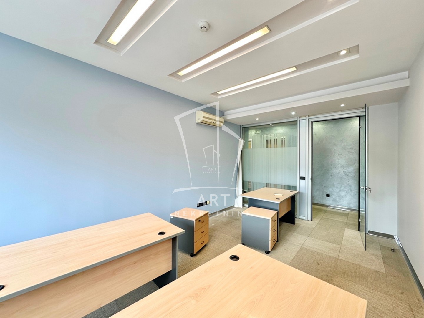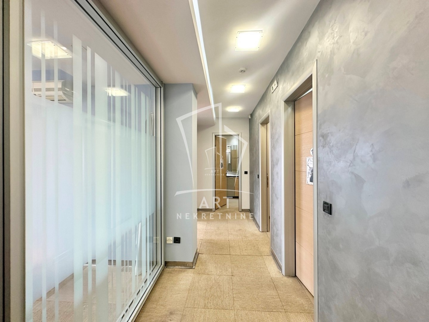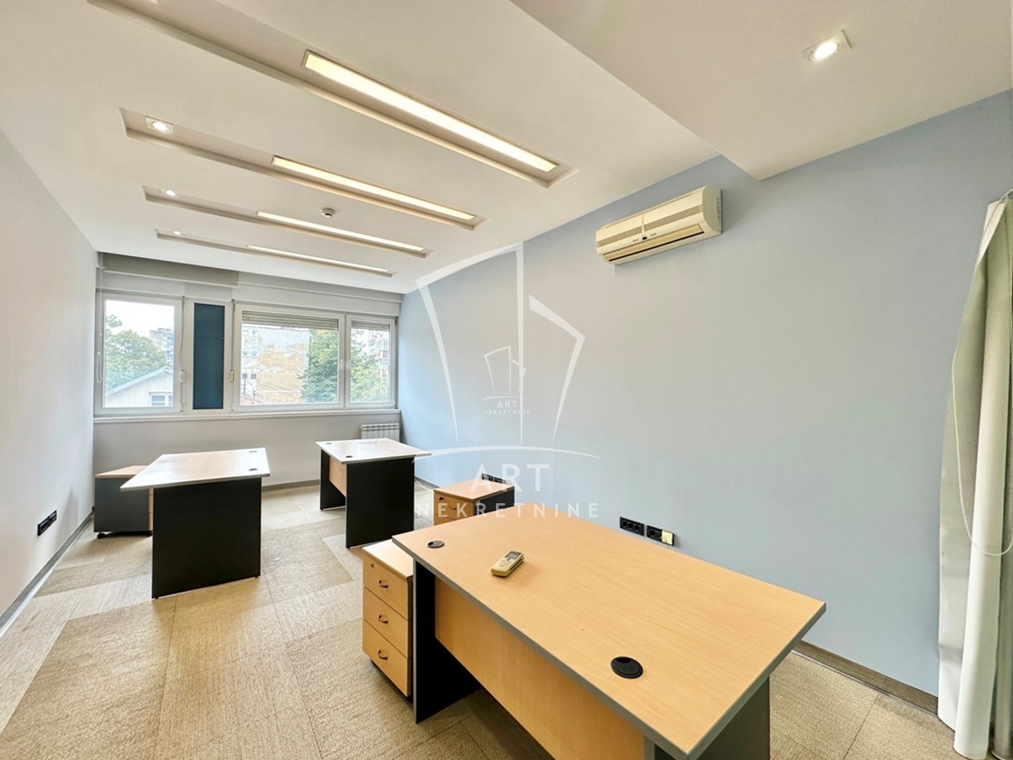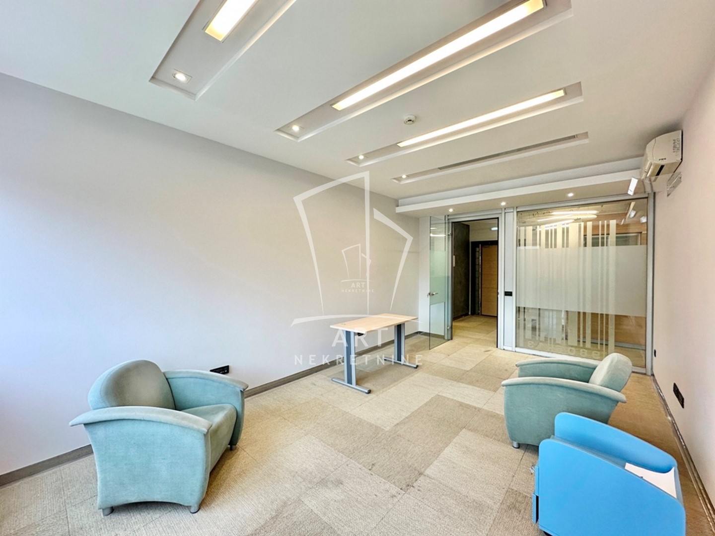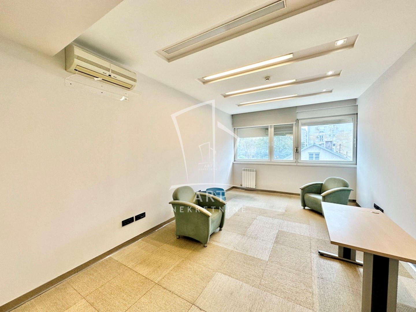 Opremljen je kancelarijskim nameštajem, ali može biti i prazan. Prostor je izuzetno svetao, komforan