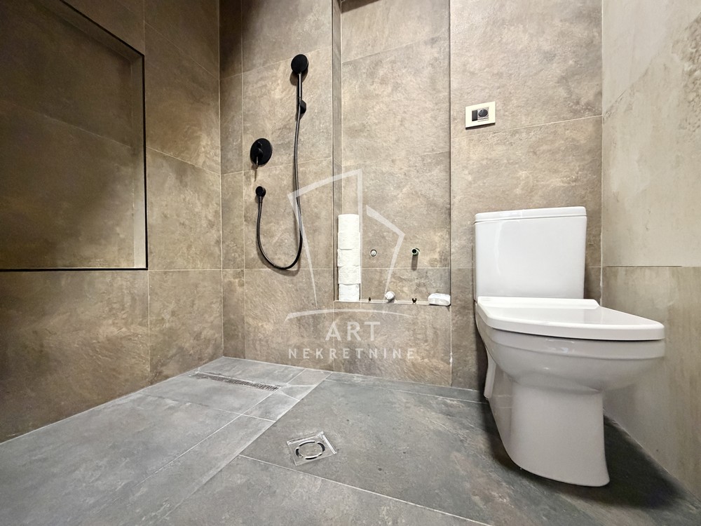 Struktura: predsoblje, prostrana dnevna soba sa kuhinjsko-trpezarijskim delom (open planed koncept) cc 25m2 i izlazom na terasu, velika spavaća soba sa izlazom na drugu terasu, kupatilo sa tuš kabinom.