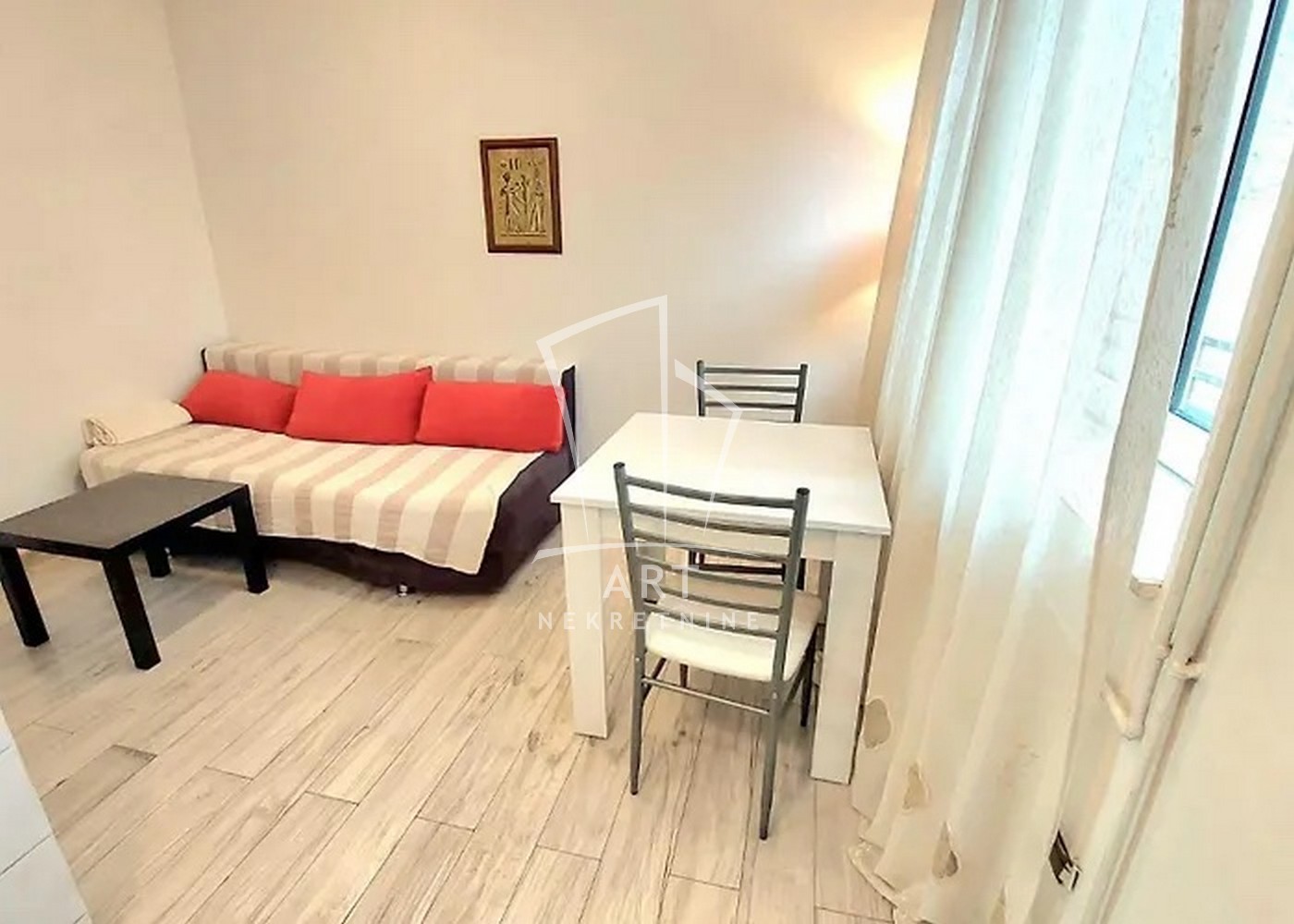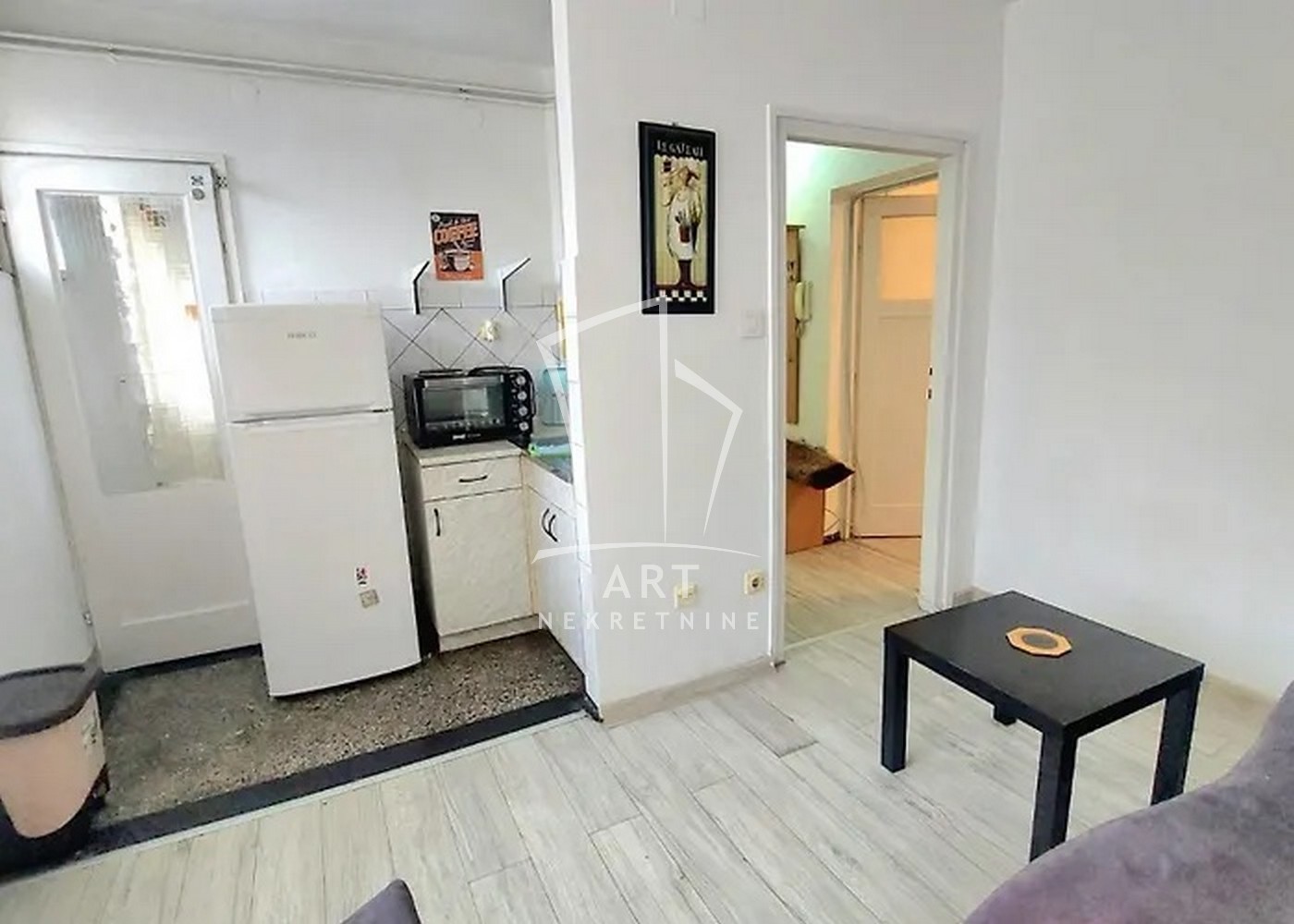 Izdaje se jednoiposoban stan, površine 40m2 na Savskom trgu. Poseduje hodnik, kuhinju, dnevni boravak, spavaću sobu i kupatilo. Stan je na drugom spratu od ukupno četiri. Ima interfon, video nadzor, klimu i internet. Stan je renoviran i odmah useljiv. Grejanje je centralno.