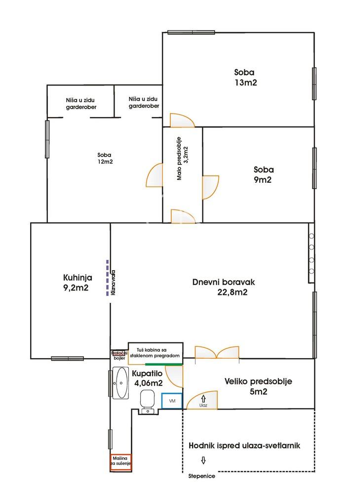 Takođe, stan poseduje i pripadajući podrum. Mogućnost ugradnje lifta.