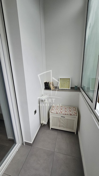 Poseduje ugradnu kuhinju koja je u sklopu manje prostorije/trepezarije s izlazom na zastakljenu terasu koja se greje, dve komforne sobe, drugu terasu i uređeno kupatilo.