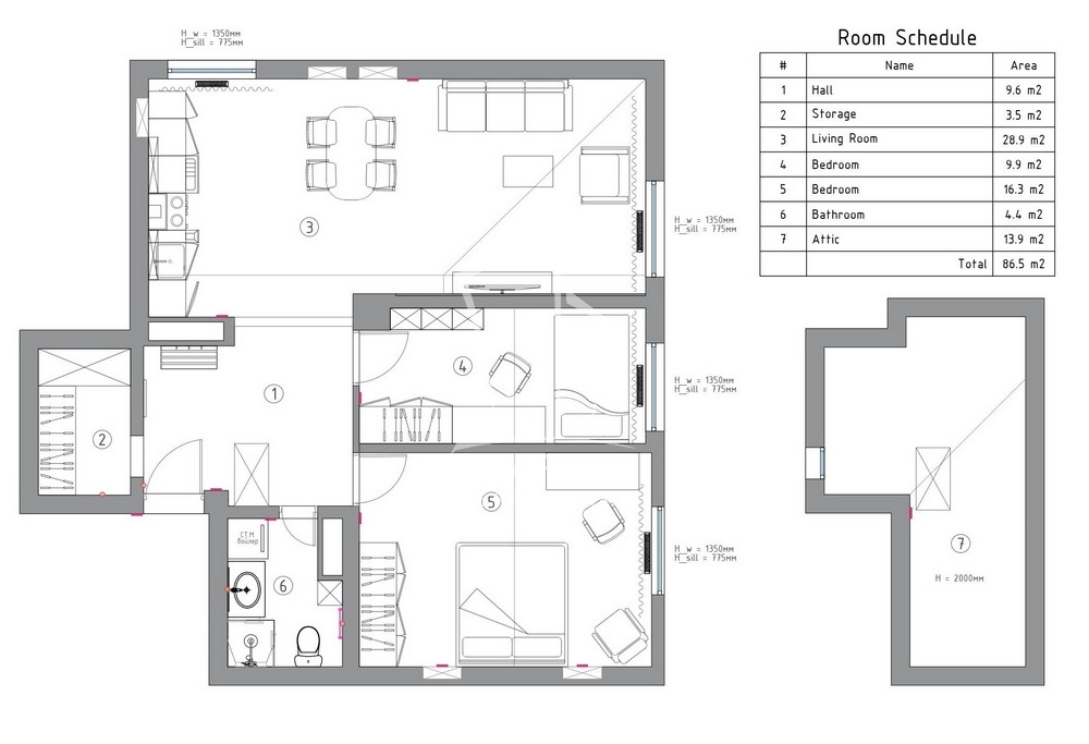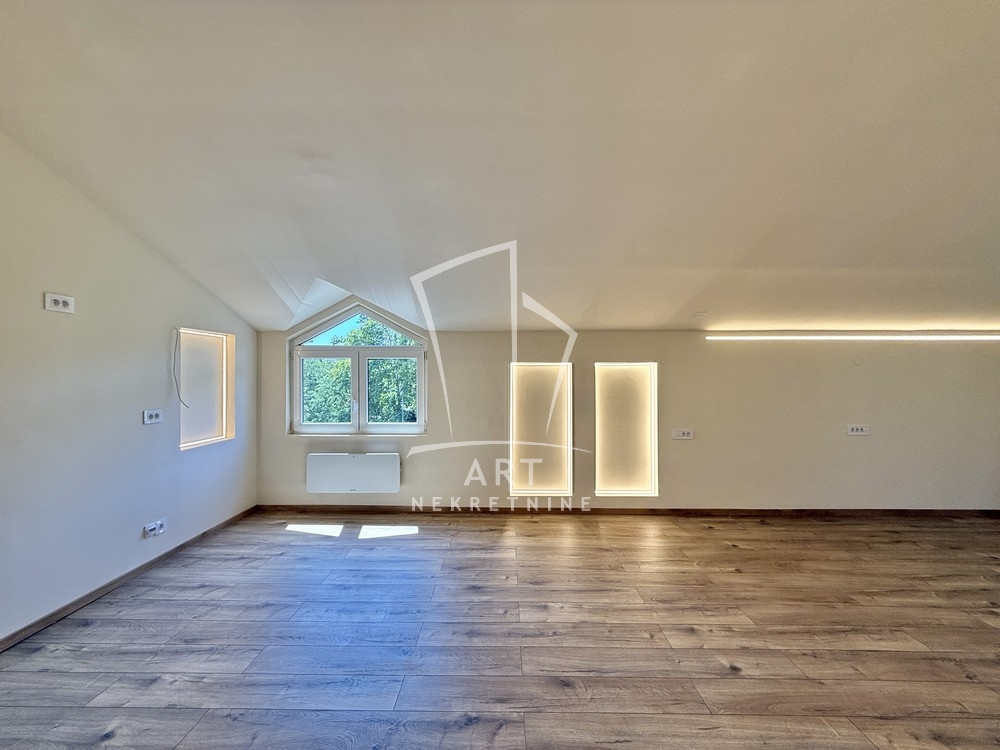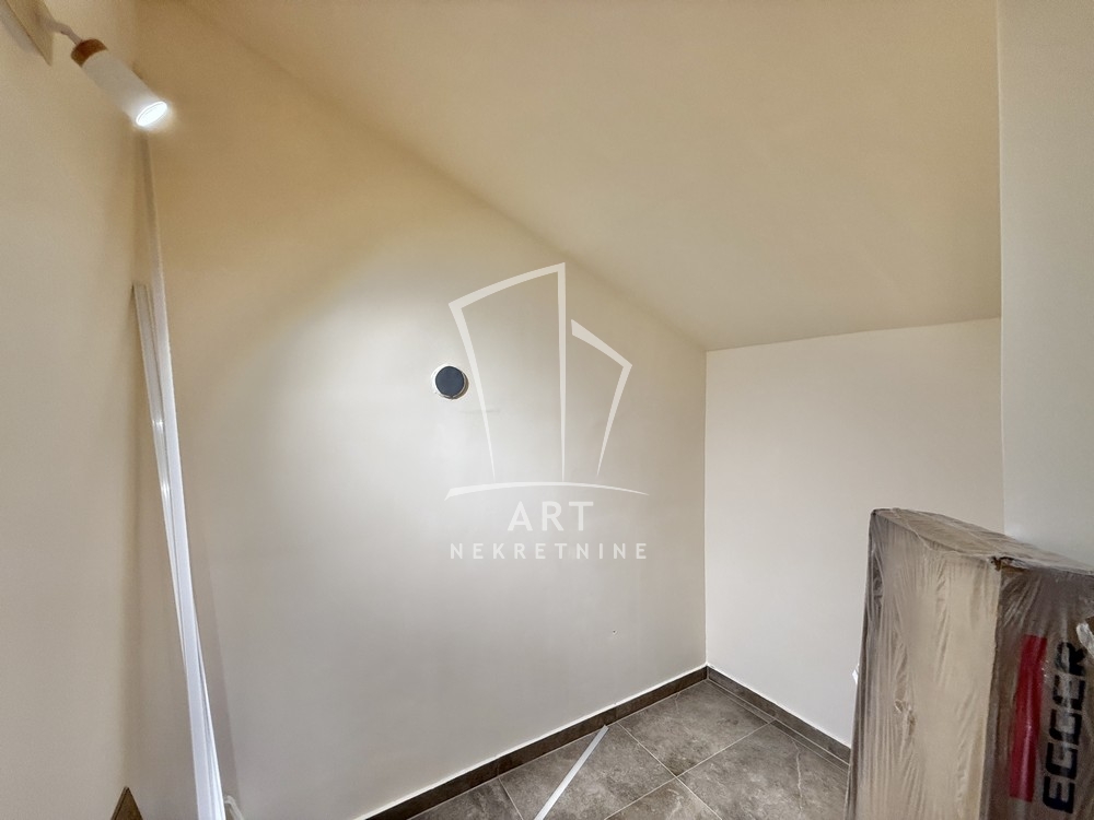 Ulazni hodnik,veliki open space kuhinja,trpezarija,dnevni boravak, 2 spavaće sobe,kupatilo,ostava i galerija idealna za radnu sobu.