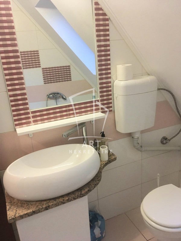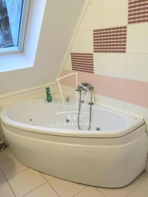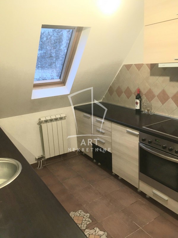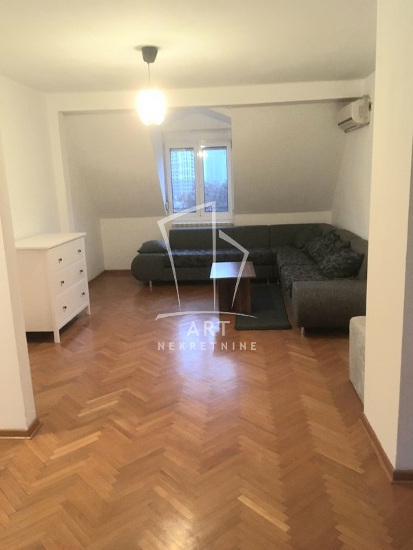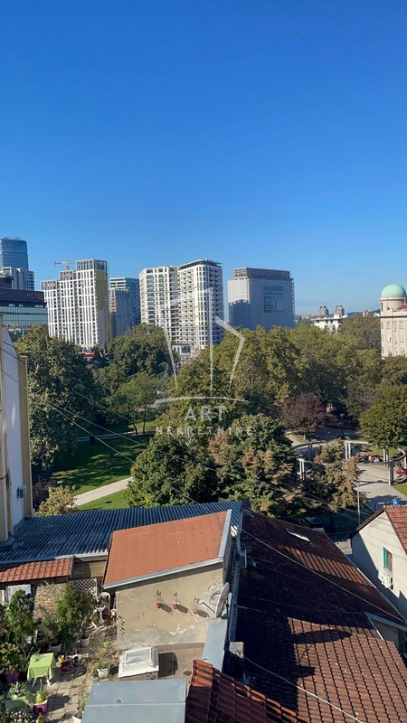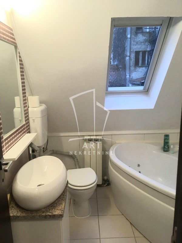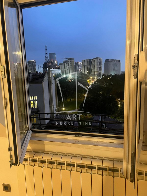 Izdaje se lep, dvosoban, svetao stan u centru grada. Stan ima hodnik, dnevni boravak, kuhinju i trpezariju, komfornu spavaću sobu, kupatilo. Ima interfon, klimu, internet. U stanu su samo u kuhinji i kupatilu krovni prozori. Zgrada se nalazi u dvorištu, nije do ulice, tako da je stan izolovan od buke. Ima pogled na Beograd na vodi.