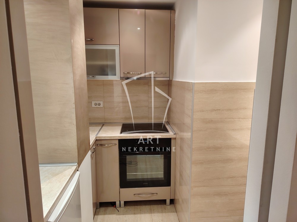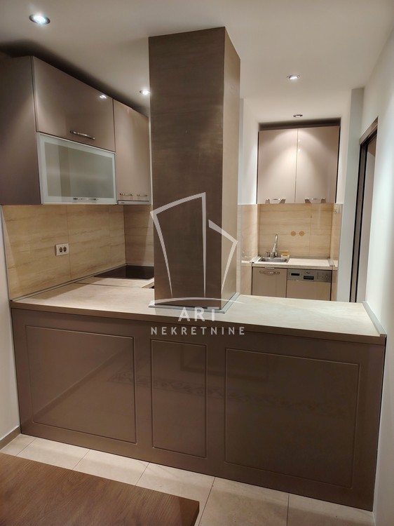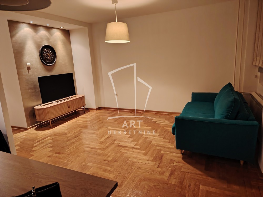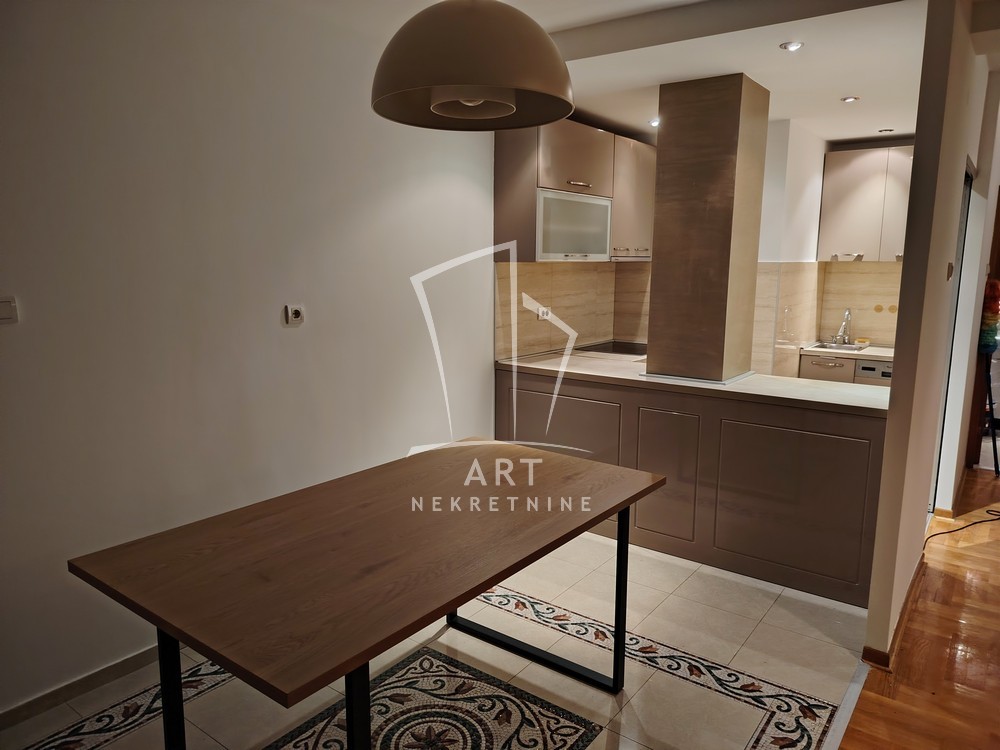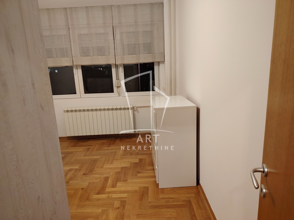 Izuzetno lep i svetao stan sa terasom i lepim pogledom, dvostrano orijentisan, kompletno renoviran, opremljen minimalistički.