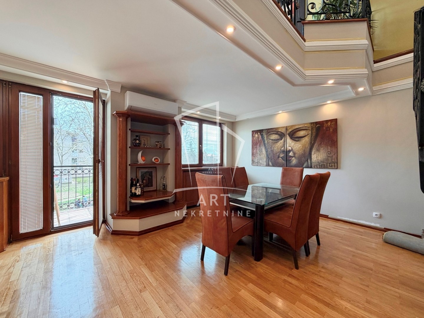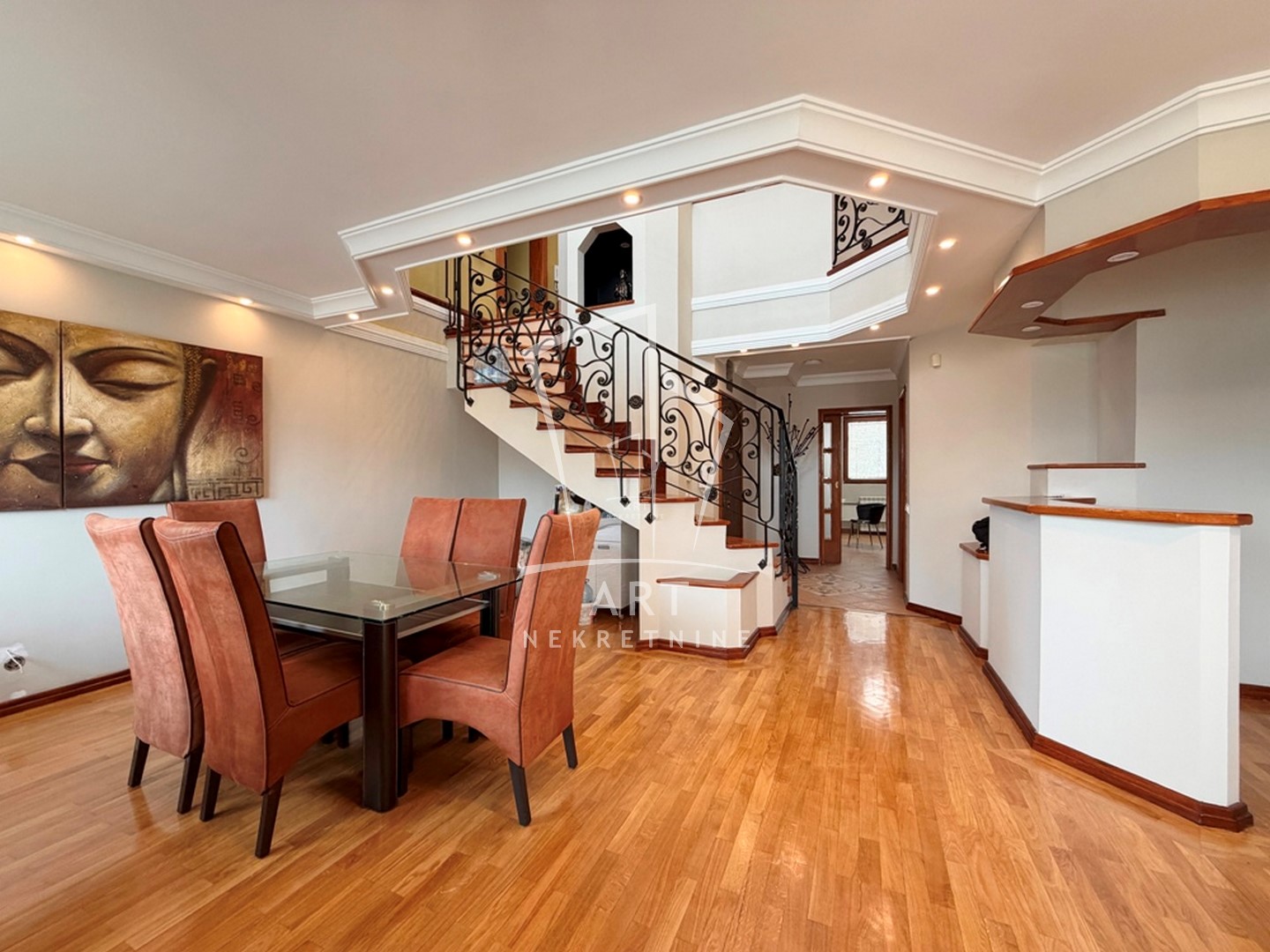 Retko u ponudi, lux dupleks na najlepšoj lokaciji u Borči u ulici Mihaila Šolohova. Stan se sastoji iz hodnika, kuhinje sa trpezarijom, toaleta, lodje, I salona. Na spratu se nalazi prostrani dnevni boravak, na koji se nadovezuje predivna terasa sa pogledom na dečiji park, tri spavaće sobe I kupatilo. Stan ima mereno 196m2, I dodatni prostor za odlaganje koji nije naveden u kvadraturi. Stan je odlična prilika za visečlanu porodicu, dvostrano orijentisan I veoma luksuzno opremljen, sa novim alu/drvo prozorima. Prodaje se sa stvarima premium kvaliteta. Zgrada je starija ali veoma lepo održavana, mikrolokacija je izuzetna, u centru naselja nedaleko od prodavnica I pijace. Iznad stana nalazi se tavanski prostor.