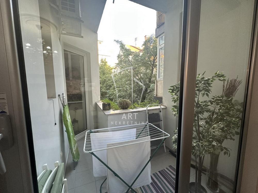 Stan se nalazi u održavanoj zgradi sa visokim plafonima, što prostoru daje dodatnu prostranost i eleganciju.