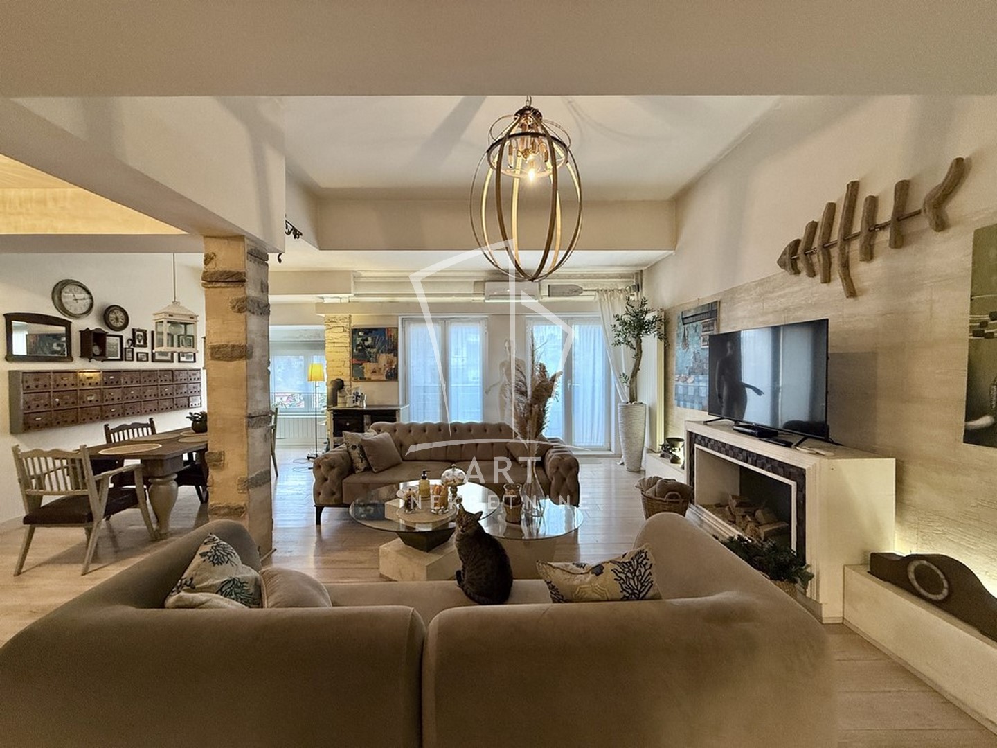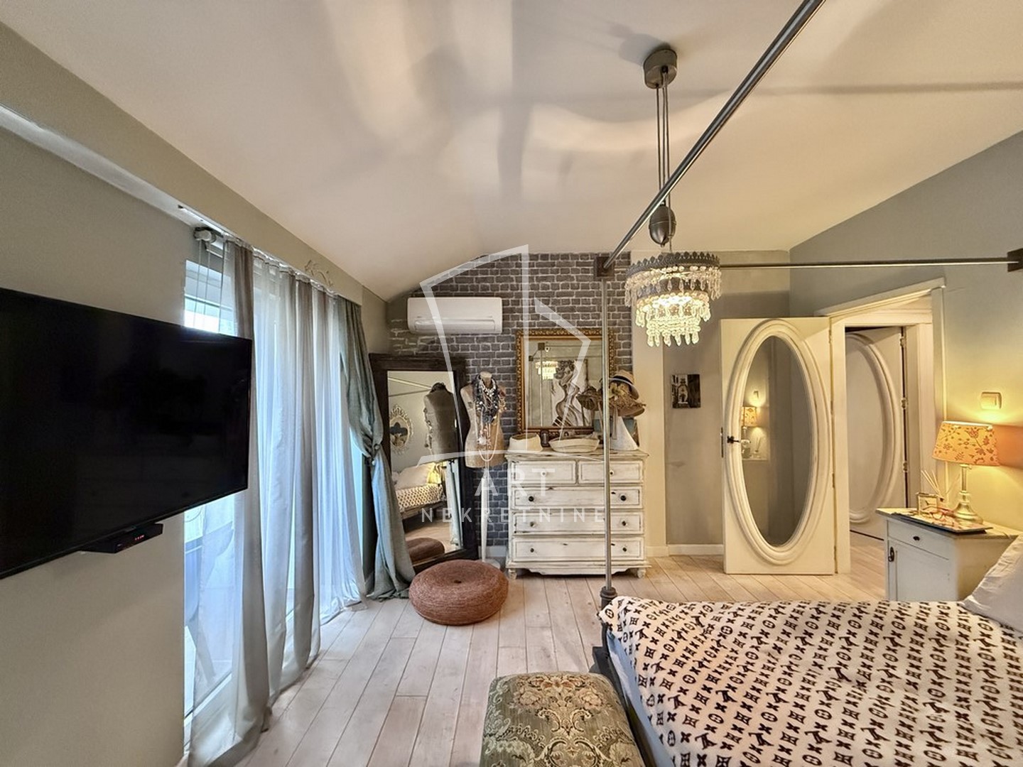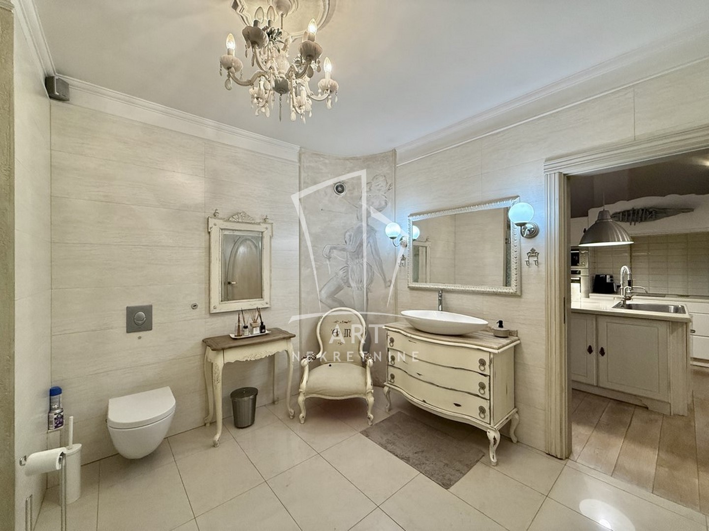 Sastoji se od velike dnevne sobe (visina plafona 5m), 4 spavaće sobe, kuhinje, kupatila, 2 terase, ostave i galerije-terase.