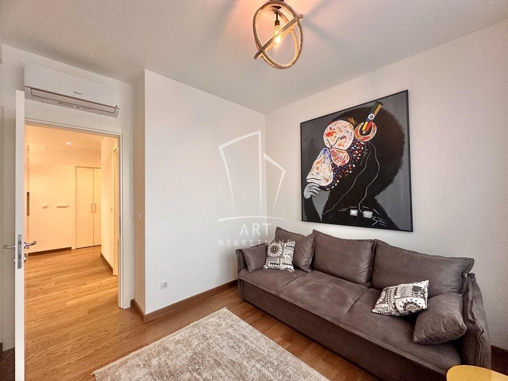 Komforana nepokretnost na atraktivnoj lokaciji u zgradi BW Arcadia, kvalitetno i biranim detaljima nameštena i opremljena.