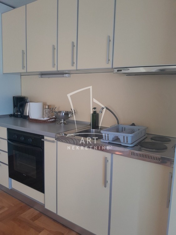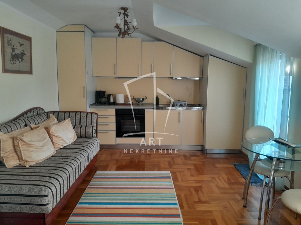 Prostorije: predsoblje, dnevni boravak sa kuhinjom i trpezarijom sa izlazom na sopstvenu terasu od 30m2, spavaća soba i kupatilo.