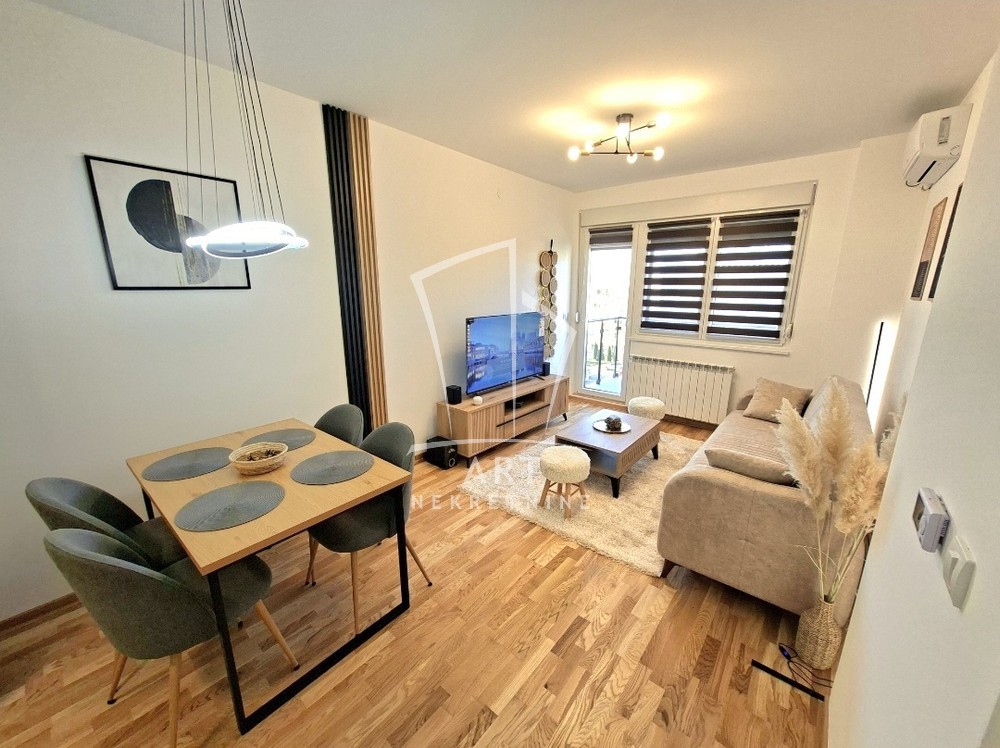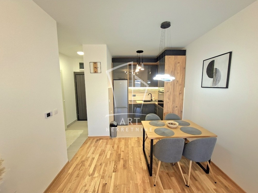 Sastoji se iz ulaznog hodnika,dnevnog boravka sa kuhinjsko trpezarijskim delom,spavaće sobe,kupatila i terase.