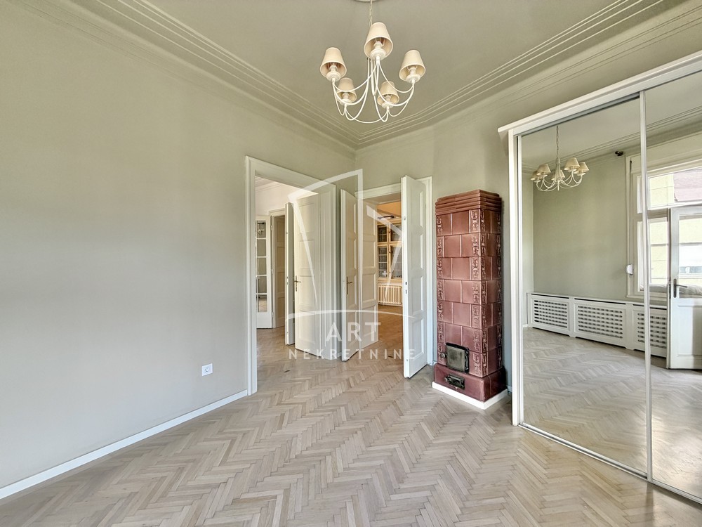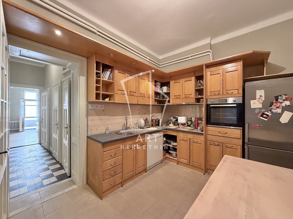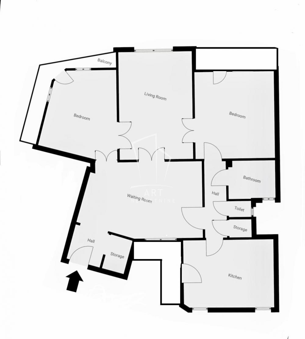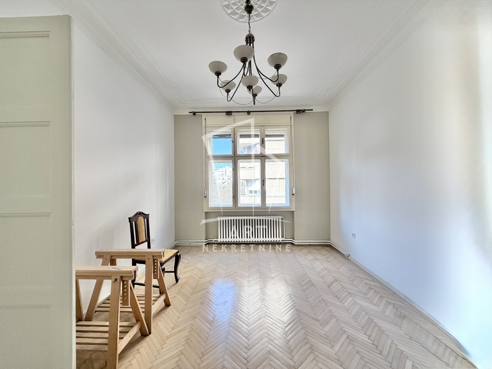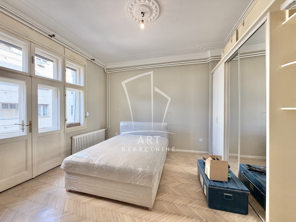 Prostorije: predsoblje, ulazni salon (ima prozor), 3 sobe, kupatilo, ostava, wc, kuhinja sa trpezarijom, 2 balkona i terasa.